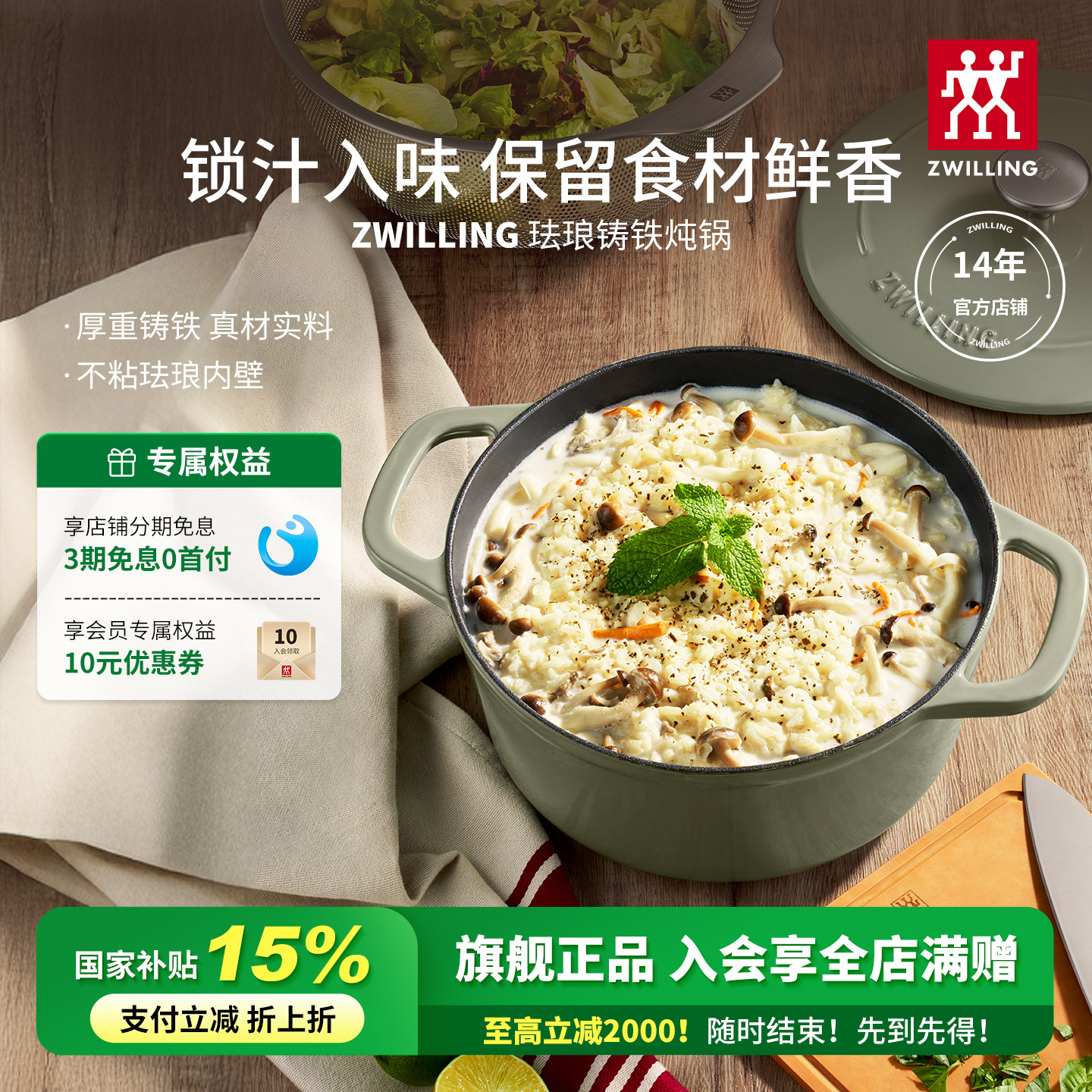 德国双立人珐琅锅24cm铸铁炖锅薄荷绿家用厨房汤锅蒸炖官方旗舰