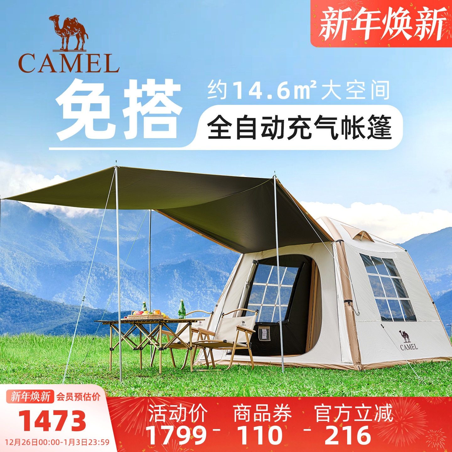 骆驼流云小筑黑胶免搭自动充气户外过夜露营野营专业装备天幕帐篷