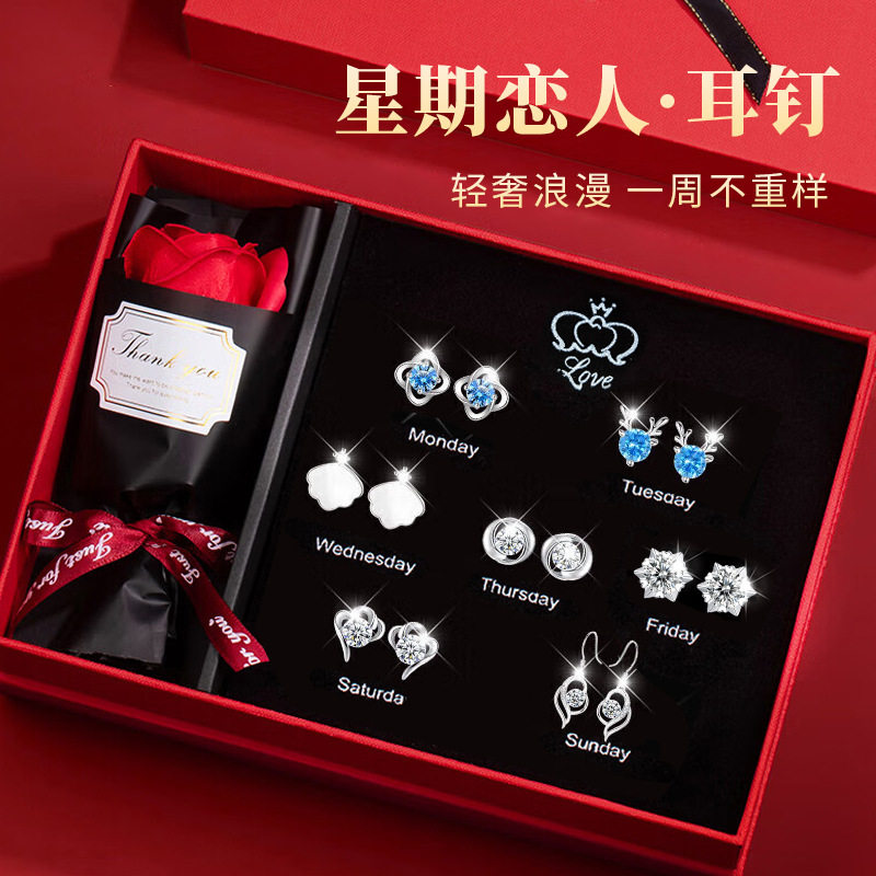 925银一周耳钉女生气质耳环套装生日礼物送女朋友老婆高级感耳饰