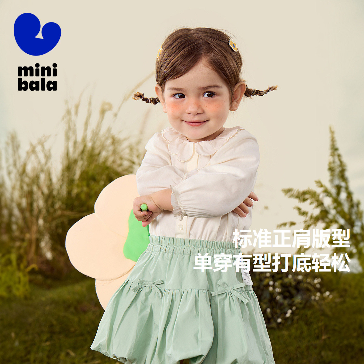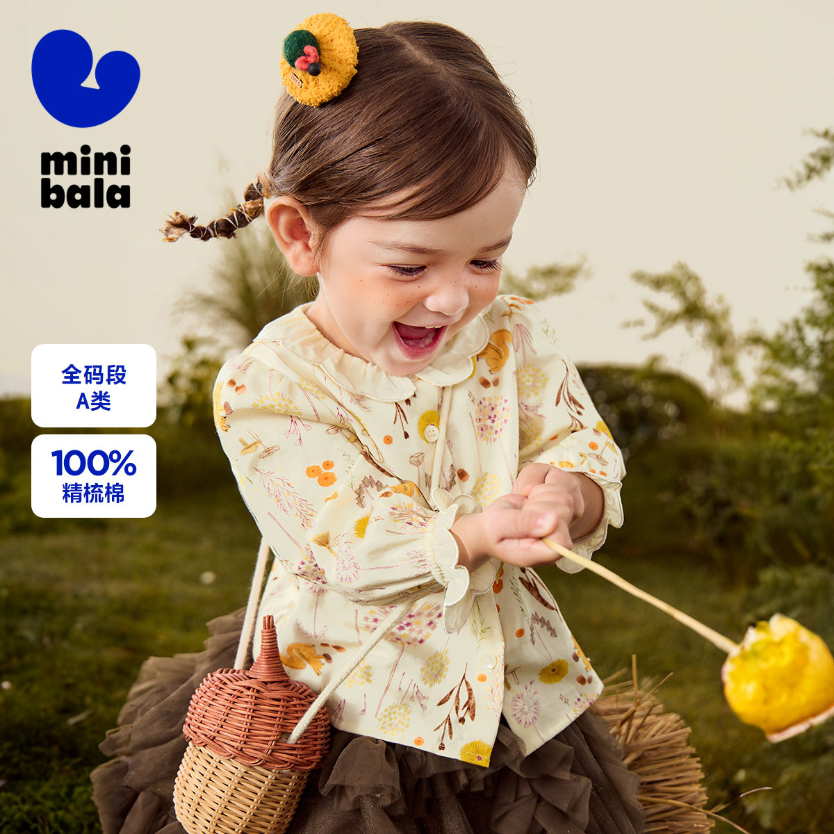 迷你巴拉巴拉女童长袖衬衫2025秋新品甜美法式纯棉翻领儿童上衣