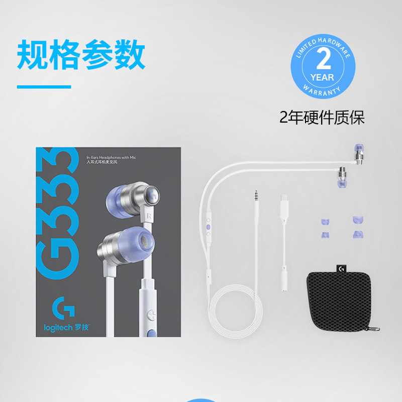 罗技G333入耳式游戏耳机有线电竞手游吃鸡电脑听歌带线控麦克风