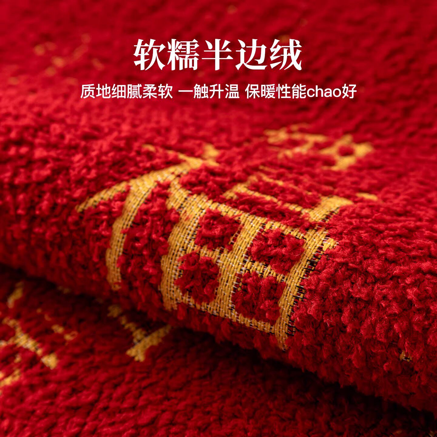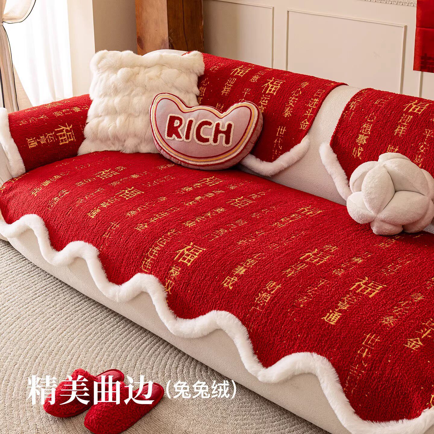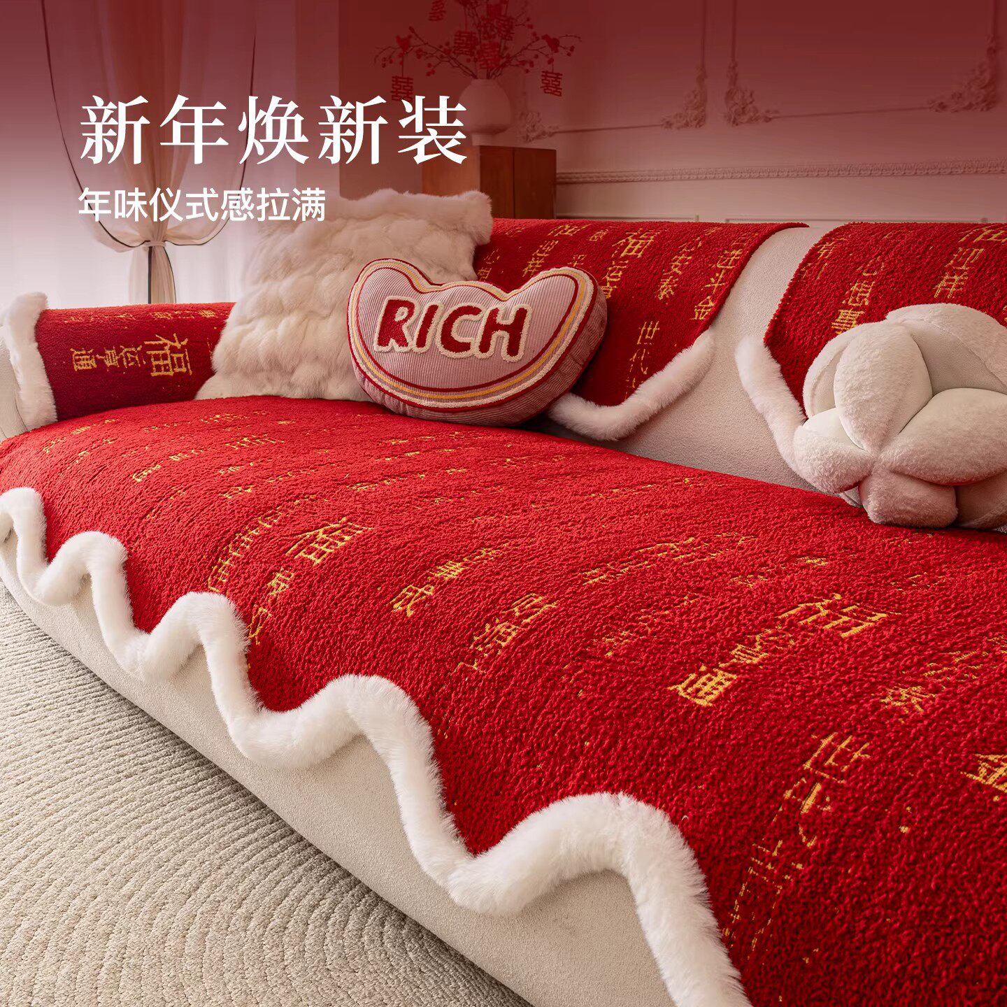 福运2026红色新年异形毛绒沙发垫盖布固定防滑坐垫子中式防猫抓