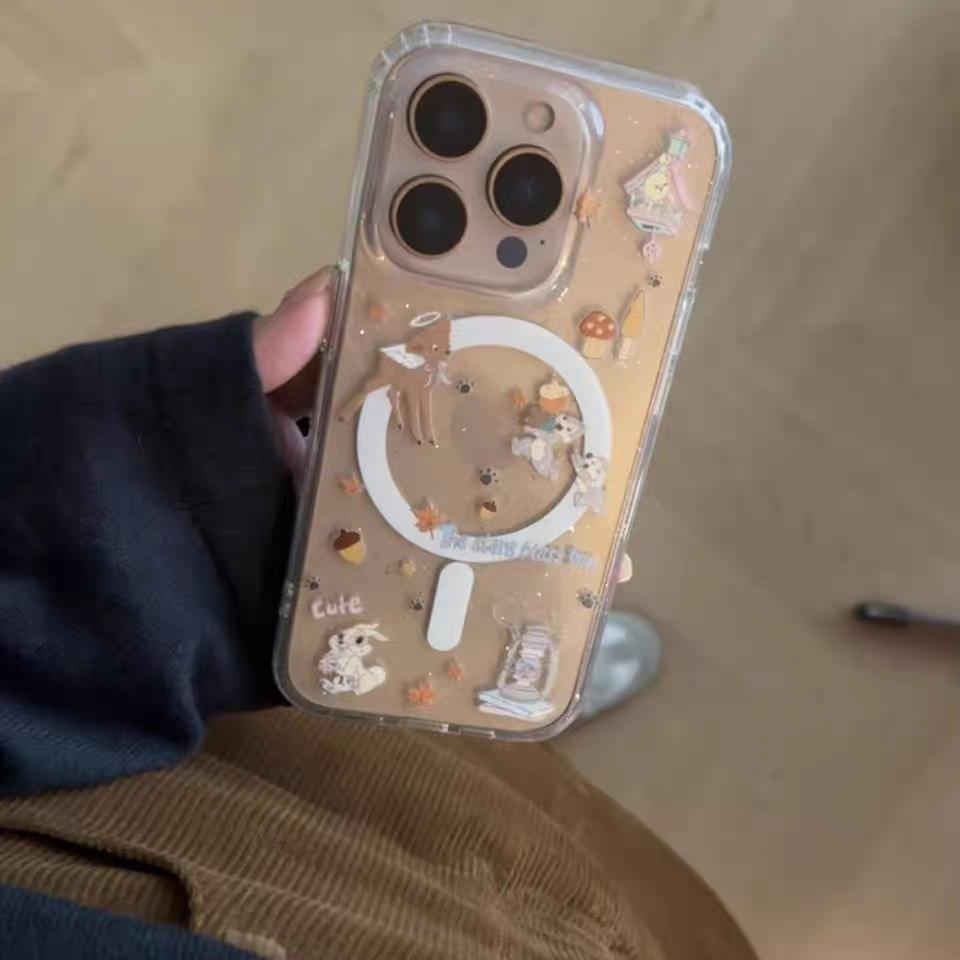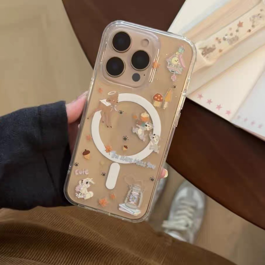 原创兔兔鹿鹿ins风亚克力磁吸手机壳适用于iPhone16promax手机壳苹果15tpu14简约131278xs新款透明防摔手机壳