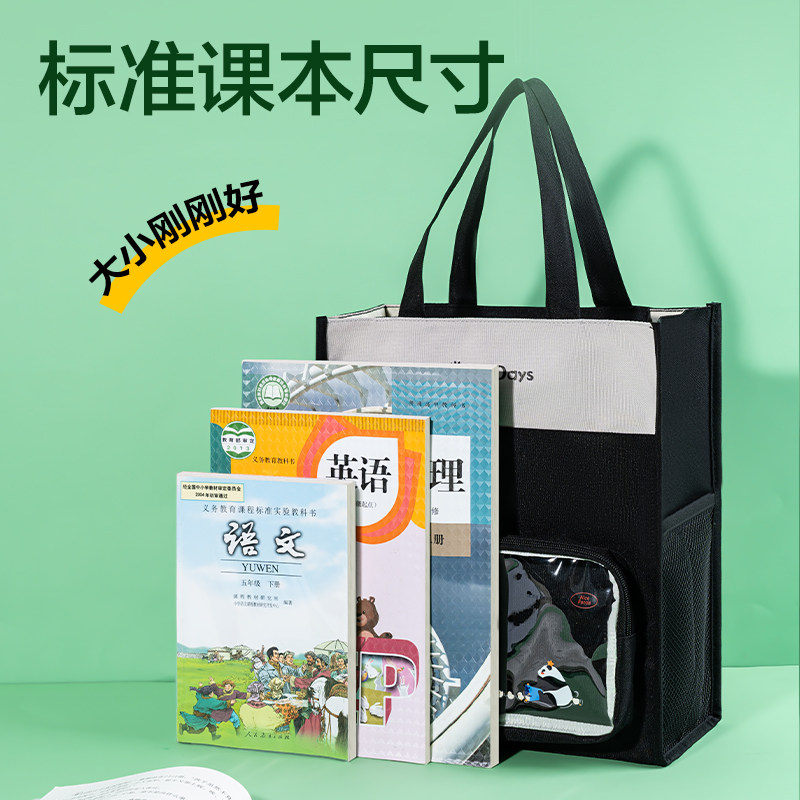 得力熊猫美术袋学生拎书小学生补习袋书袋手拎补课帆布收纳袋女孩透明试卷作业初中大容量男孩儿童学习手提袋