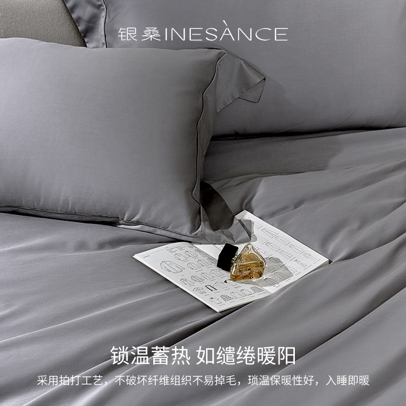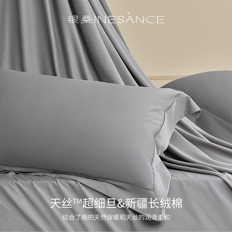 银桑INESANCE兰精天丝长绒棉柔软磨毛四件套秋冬保暖床上用品纯色