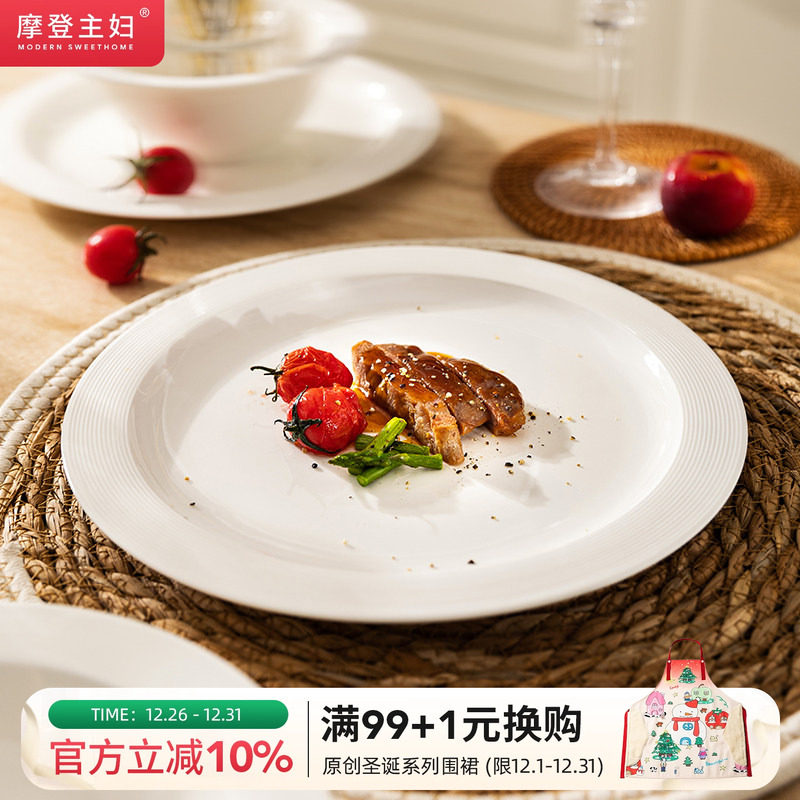 摩登主妇1330℃高温白瓷盘子饭碗家用餐具汤碗牛排brunch草帽餐盘