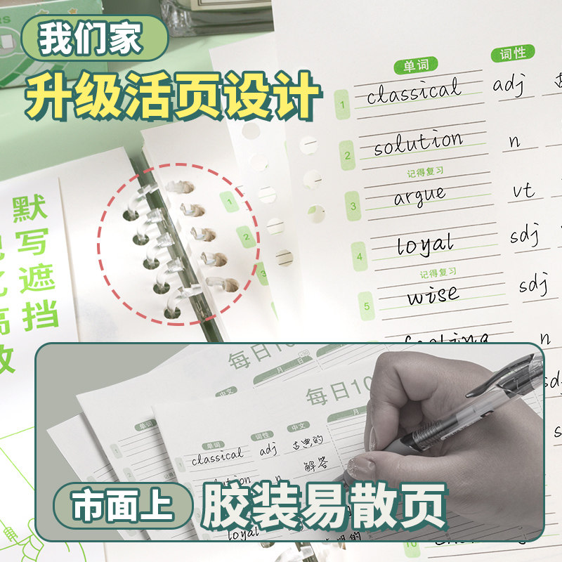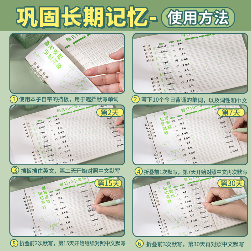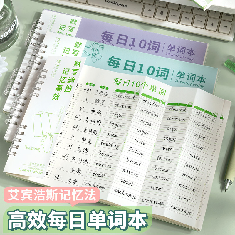 艾宾浩斯英语单词本记忆法活页每日遗忘曲线可折叠小学生中背神器听写纸10词默写本速记专用本子背诵英文中文