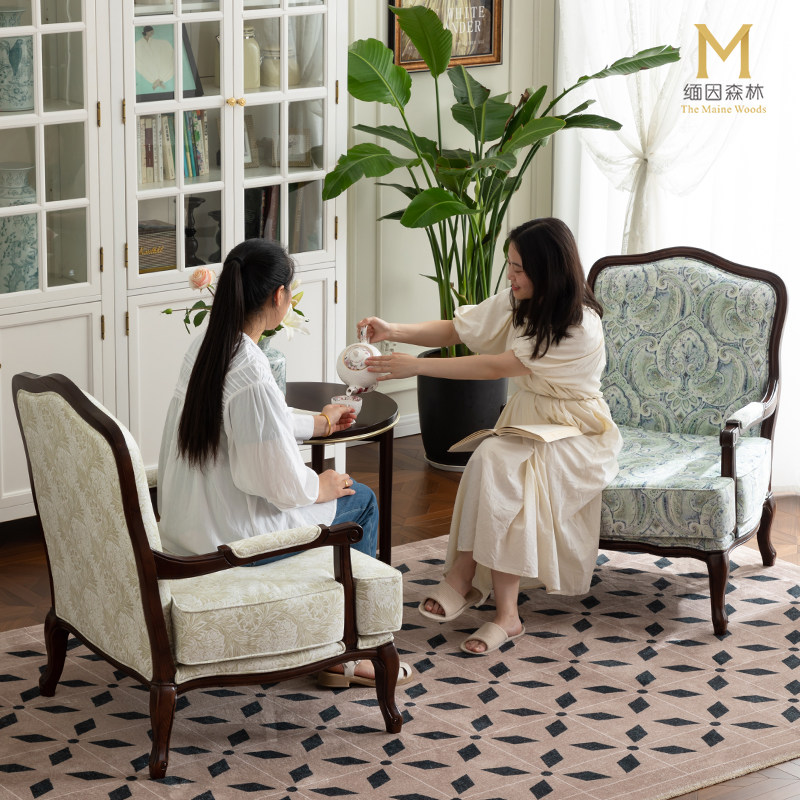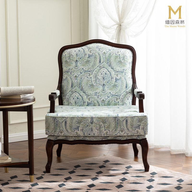 法式单人沙发老虎椅客厅复古休闲椅沙发椅布艺座椅美式卧室单人椅