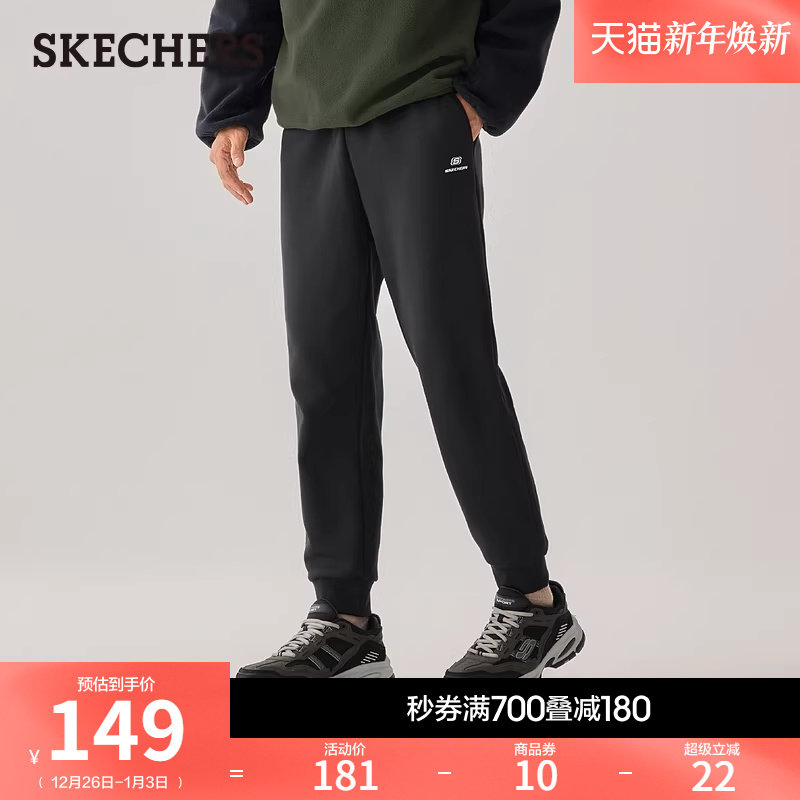 斯凯奇2025冬季新款男百搭针织长裤弹性加绒裤子保暖休闲运动长裤