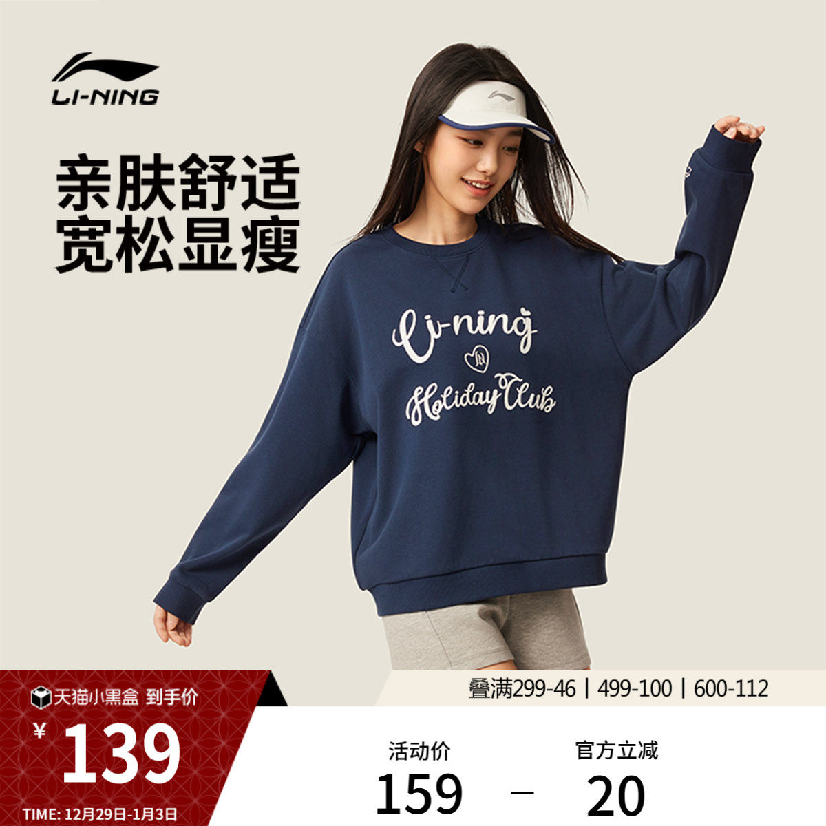 李宁网球卫衣女冬季官方新款女装圆领长袖松弛感内搭上衣运动服女