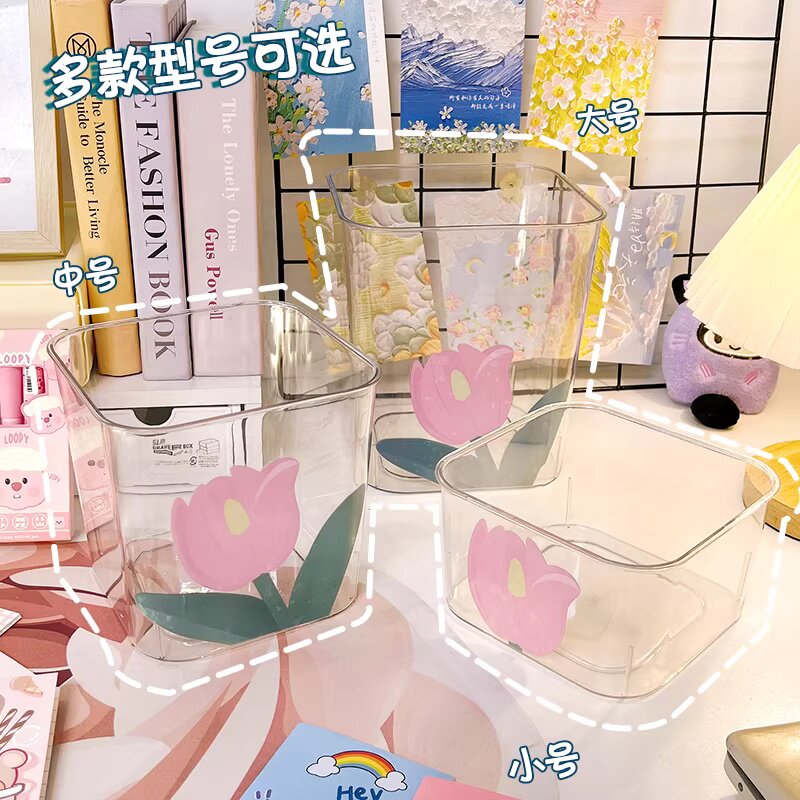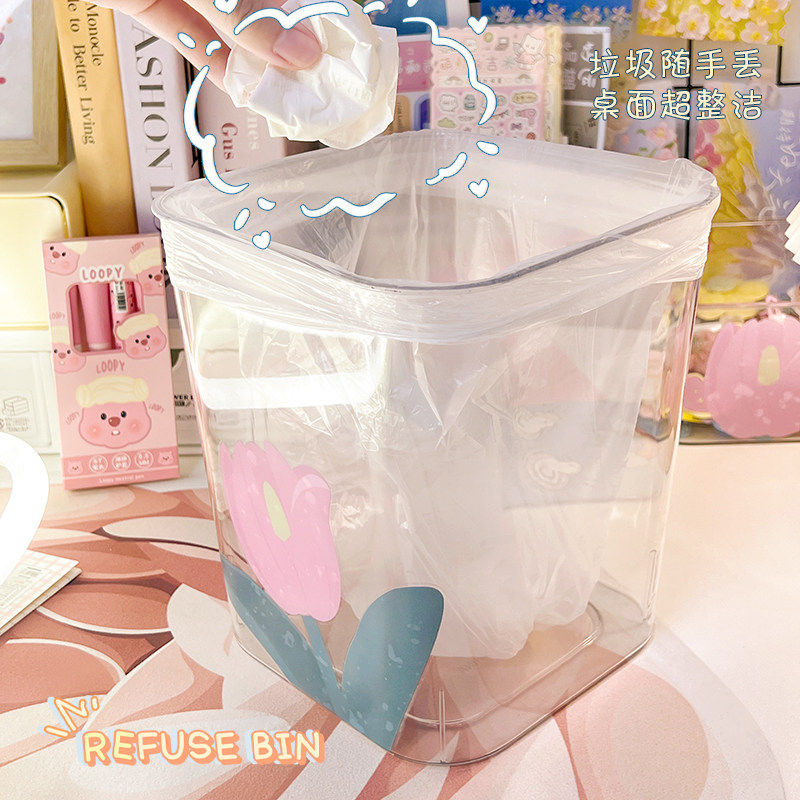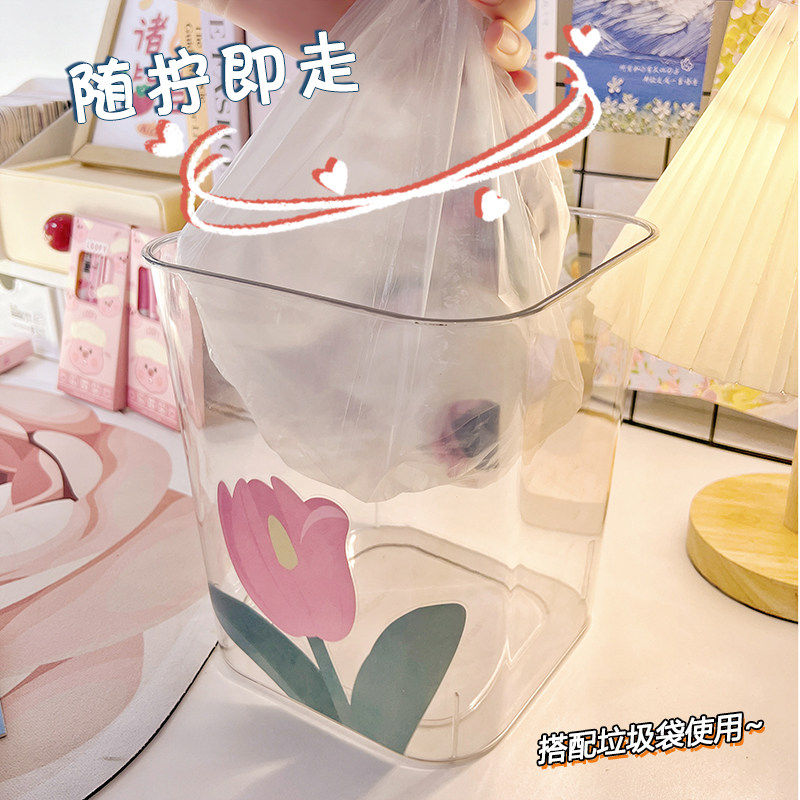 桌面小型垃圾桶可爱家用小号亚克力透明养斗鱼小缸方形垃圾收纳桶