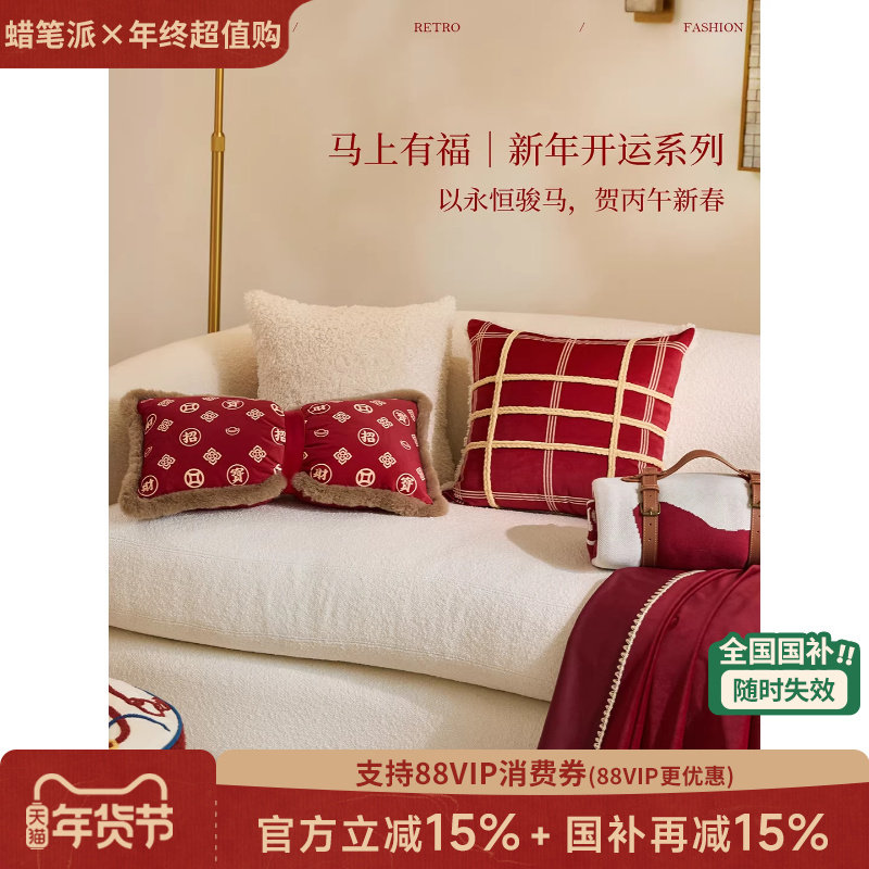 蜡笔派「马上有福」聚福抱枕红色新年现代轻奢沙发靠枕睡觉靠垫