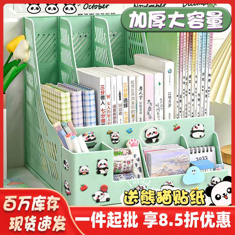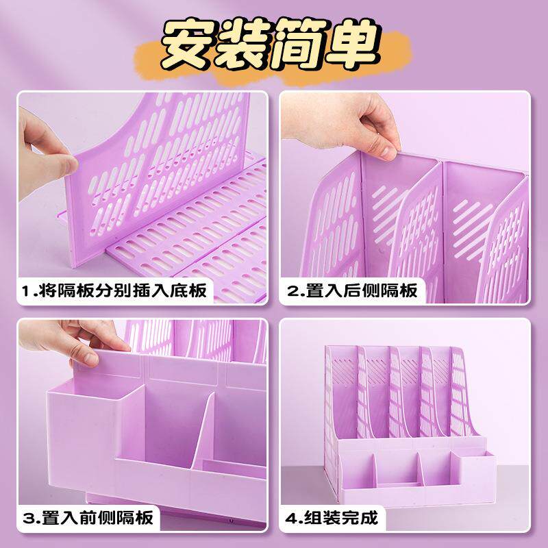 桌面文件柜四栏文件夹收纳盒加厚多层文件框女生办公用品文具桌面资料收纳架