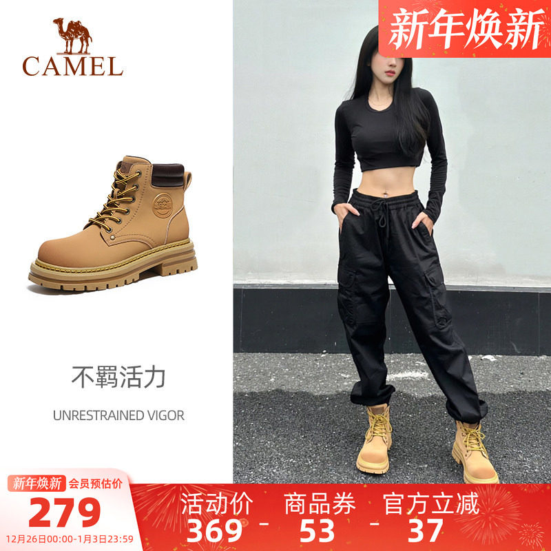 骆驼女鞋2025秋季新款厚底马丁靴女款英伦复古大黄靴户外工装靴