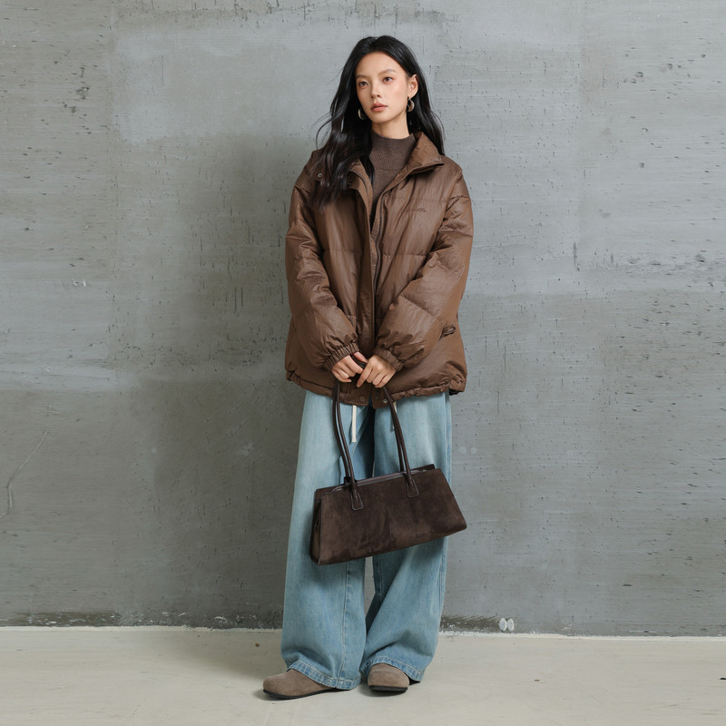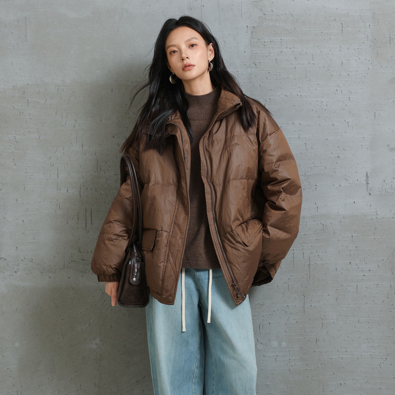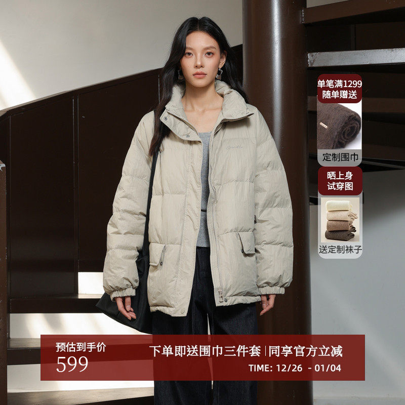 【鞠婧祎同款】鸭鸭2025年冬新款百搭短款女士纯色立领羽绒服外套