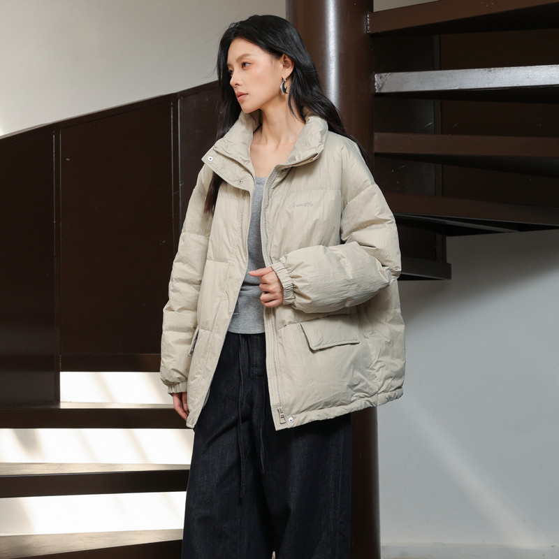 AIRIQI冬季新款休闲宽松立领轻薄短款白鸭绒羽绒服外套AX44YR050