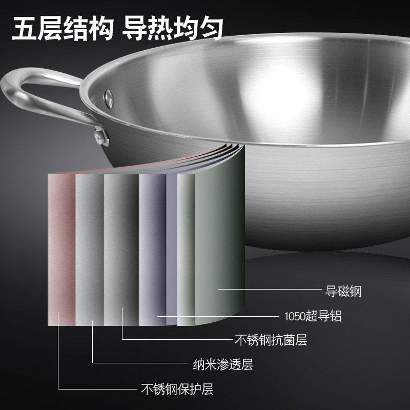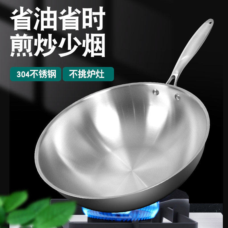 苏泊尔德国不锈钢炒锅304加厚无涂层不沾锅家用电磁炉a5不粘平底