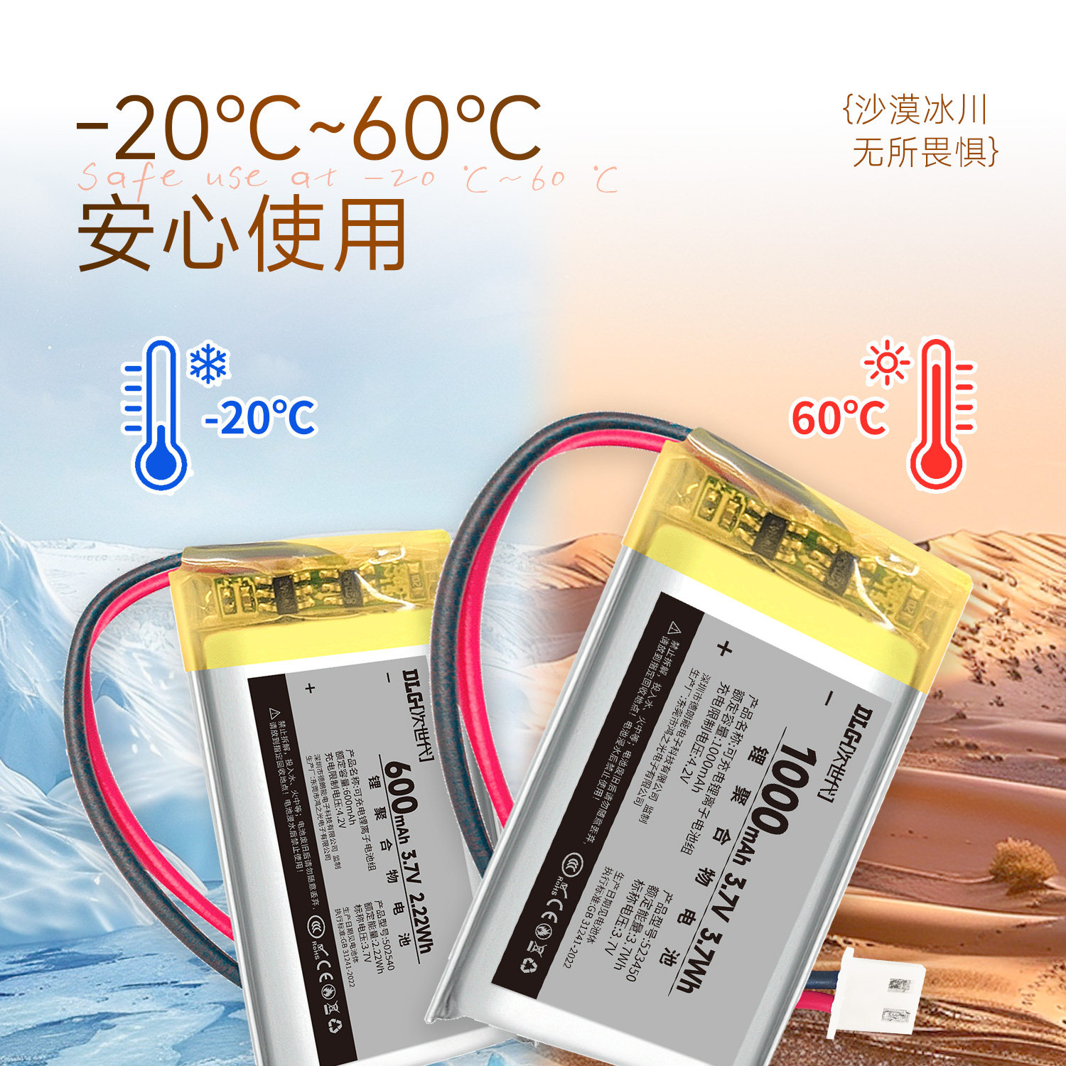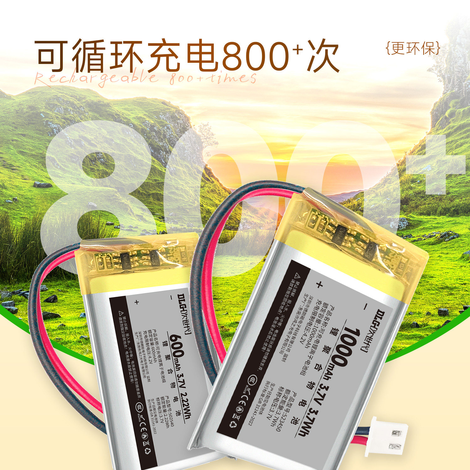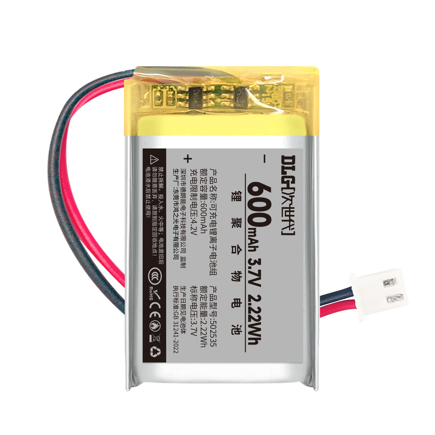 次世代 3.7V聚合物锂电池600mAh插卡音响电子玩具行车记录仪导航仪充电锂电池502535