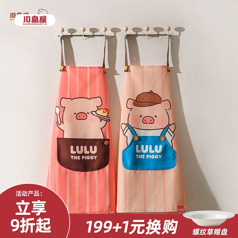 川岛屋&lulu猪联名 围裙厨房家用2025新款可爱防水防油做饭罩衣女