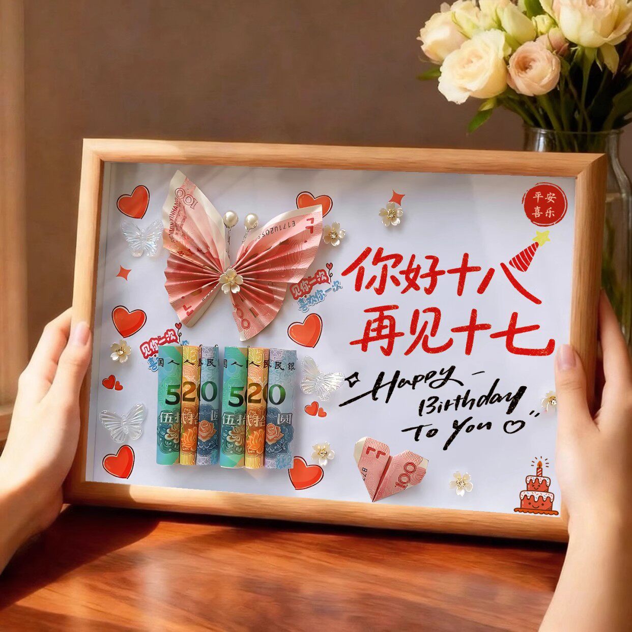 送孩子十八岁成人礼品手工diy定制有钱花相框生日礼物创意摆件