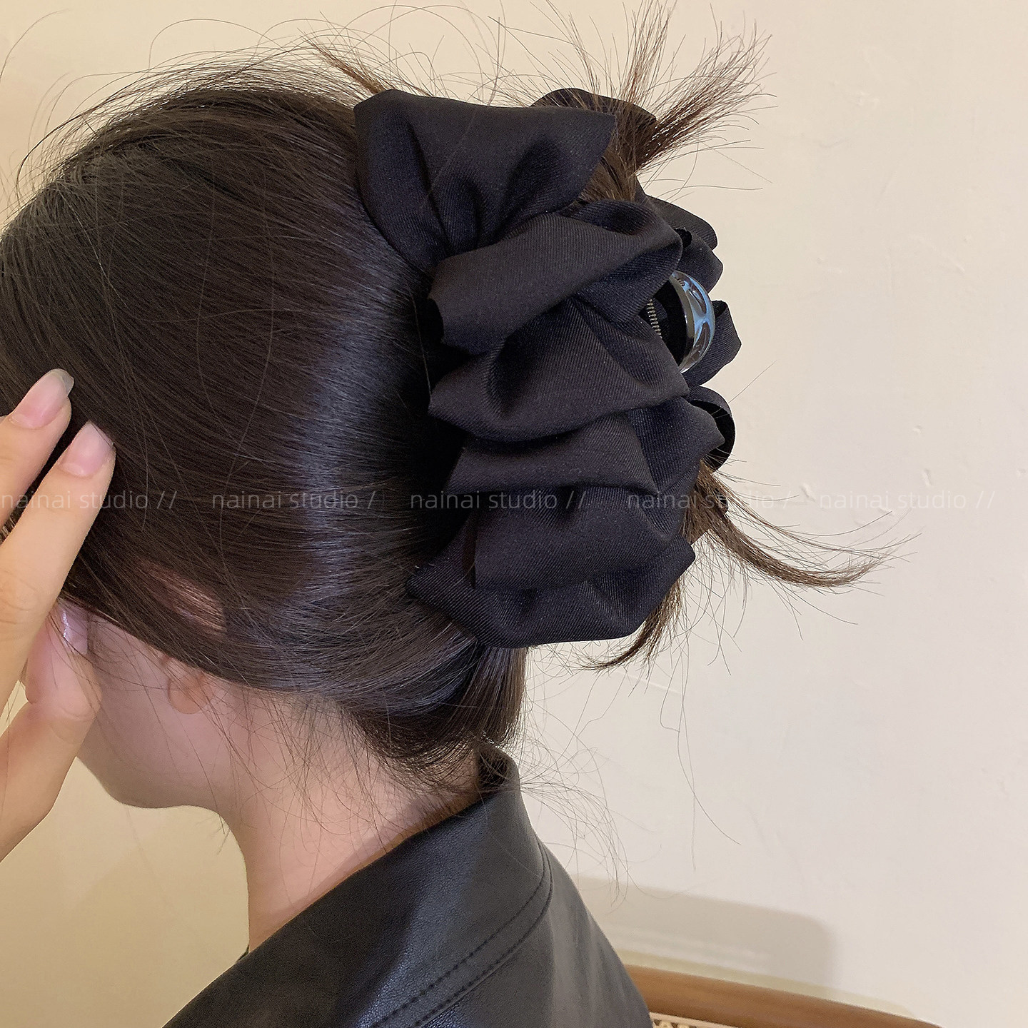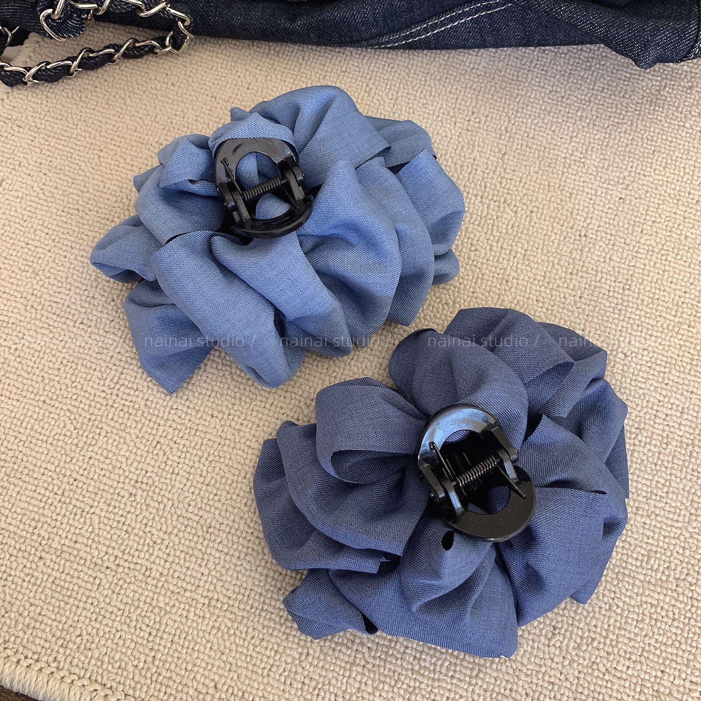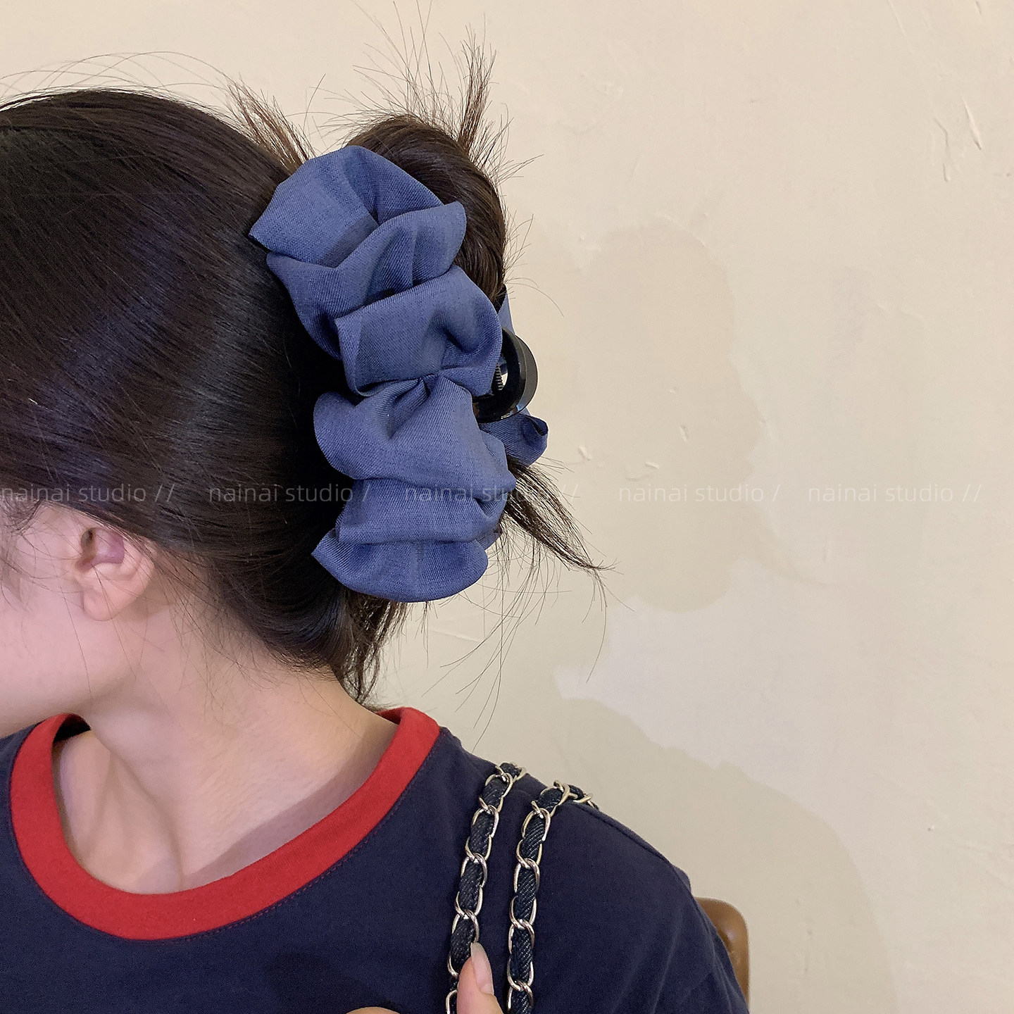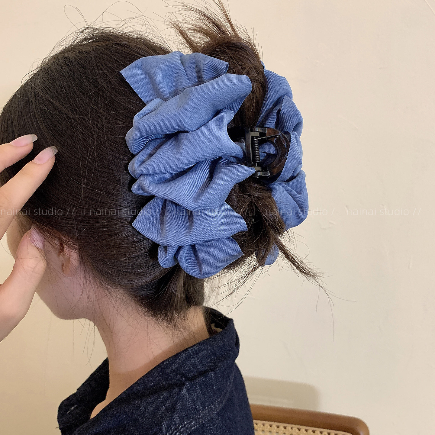 牛仔蓝色抓夹~泡泡云朵饱满后脑勺盘发鲨鱼夹显发量夹子发饰发夹