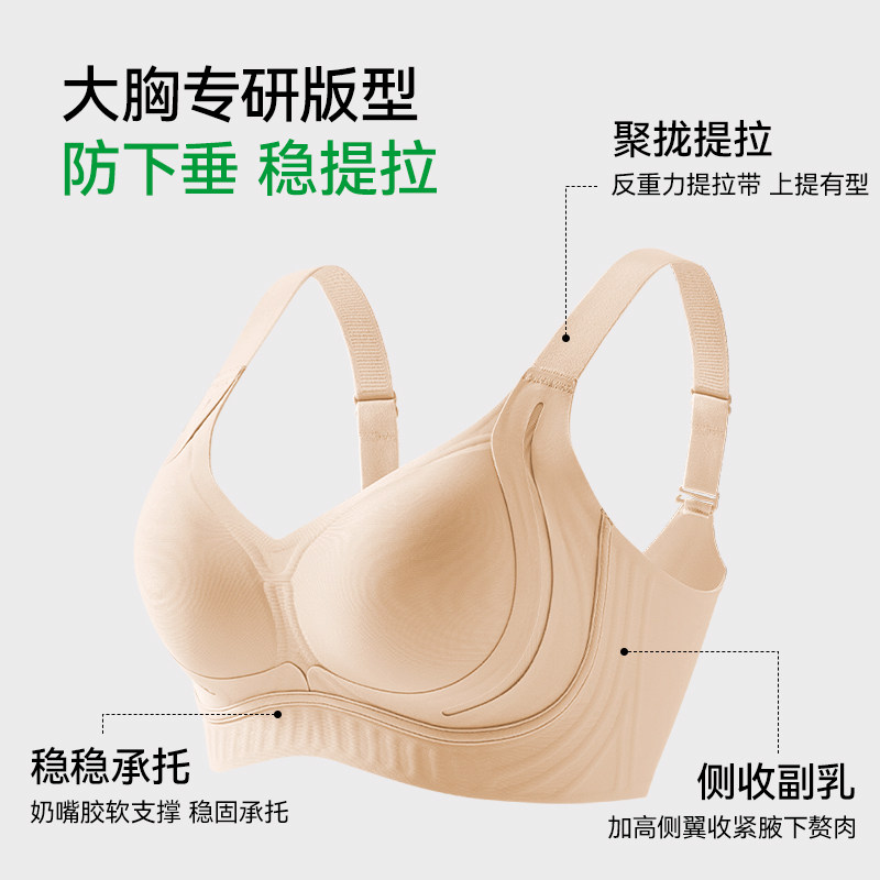 润微提拉女王内衣女大胸显小无痕大码调整防下垂收副乳粉底液文胸