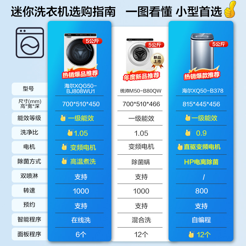 【惊喜特惠】海尔迷你洗衣机5公斤直驱全自动小型儿童波轮除菌378