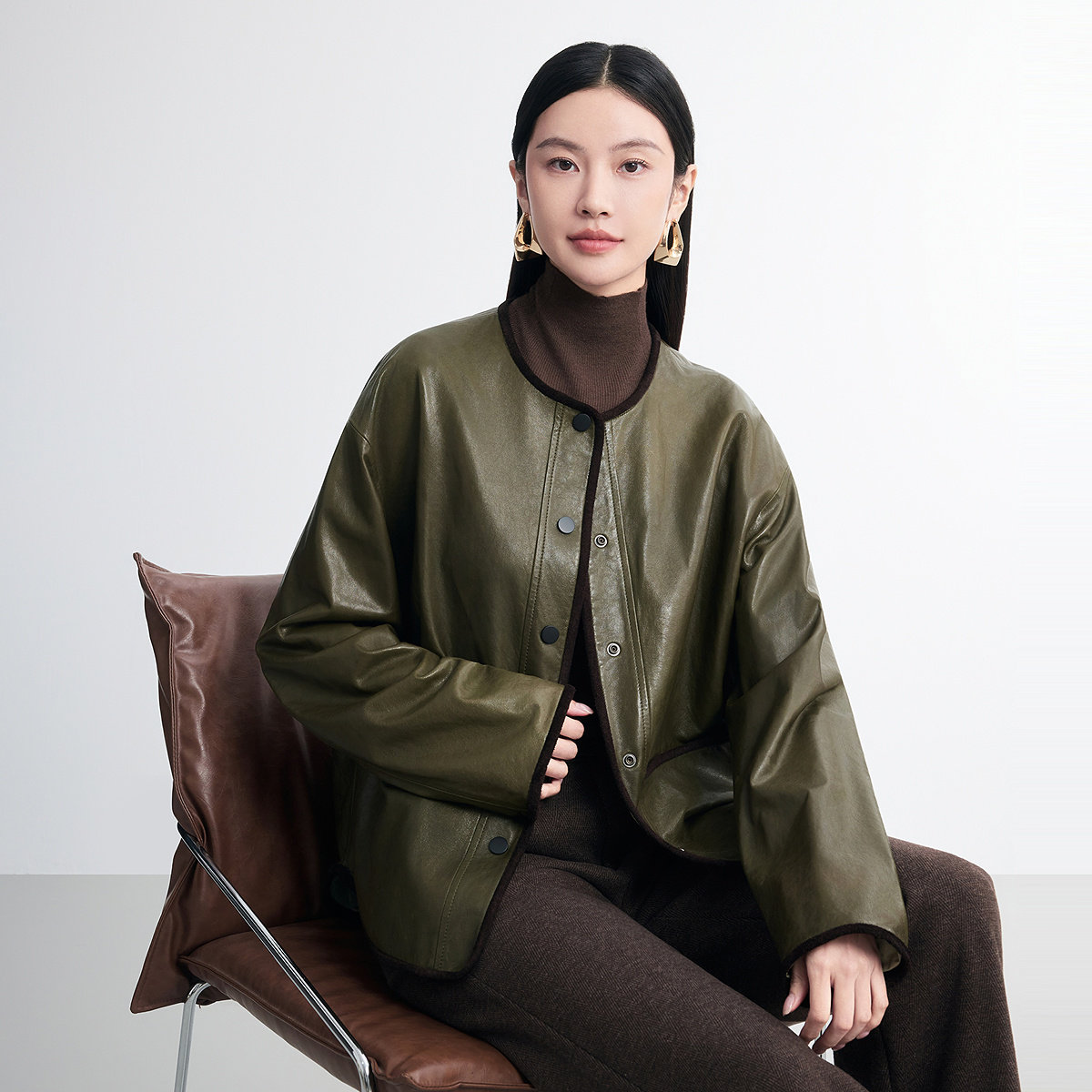 FINITY菲妮迪真皮皮衣2026春新款轻奢羊皮革短款老钱风短外套女装