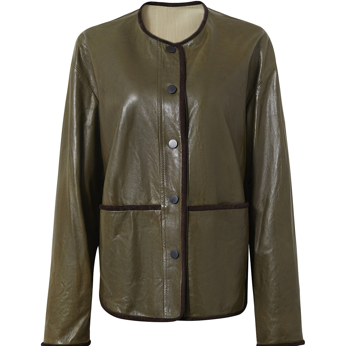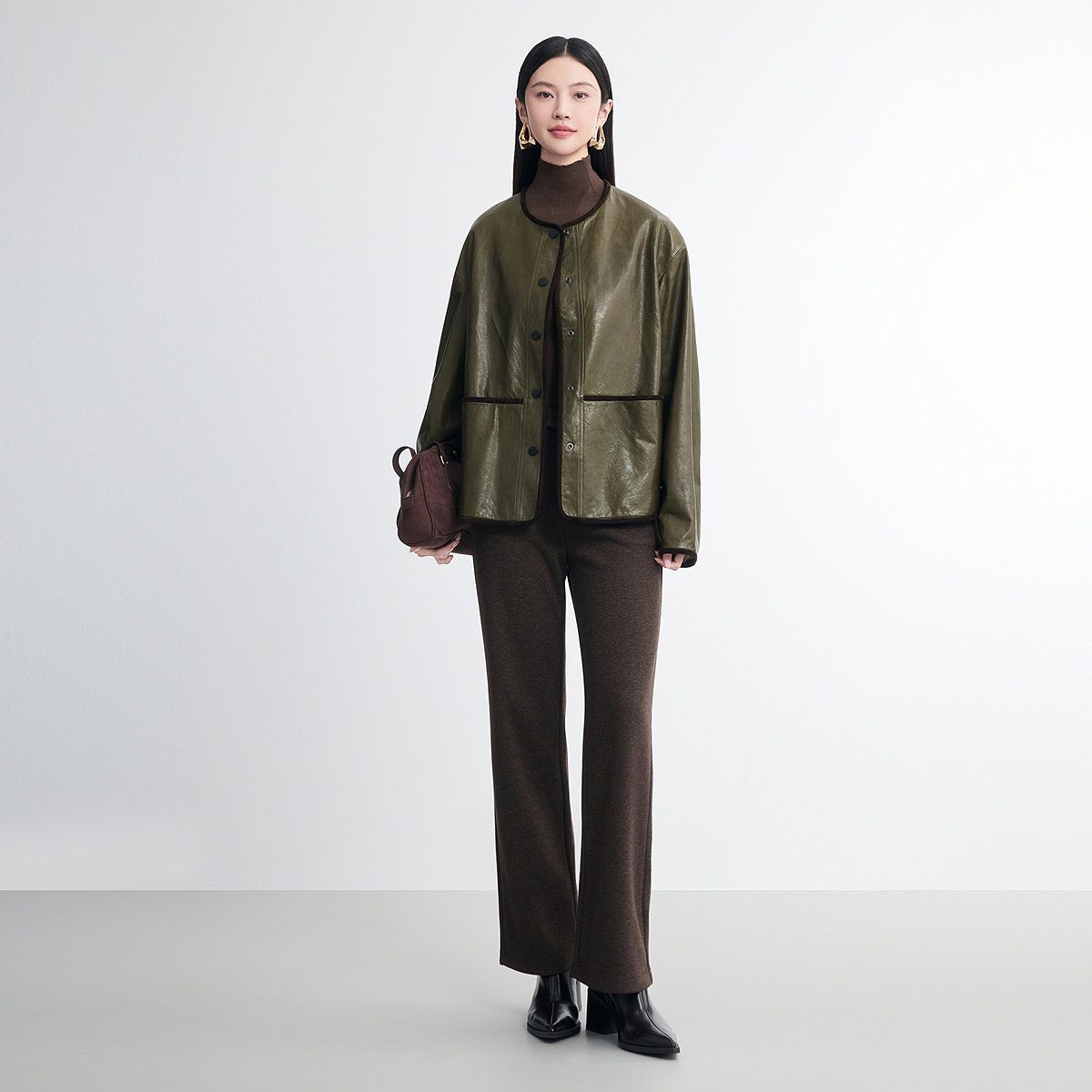 Eland衣恋皮衣女纯色带拉链长袖翻领外套2025冬季新款