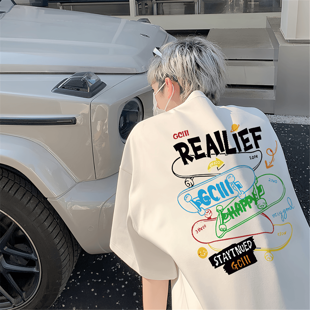 【320克重磅纯棉】美式夏季潮流宽松圆领半袖上衣短袖印花体恤衫