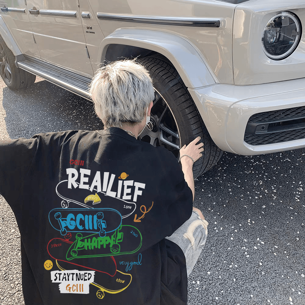 BURNIN*小火苗火焰横排长袖T恤男宽松美式街头加绒保暖打底衫上衣