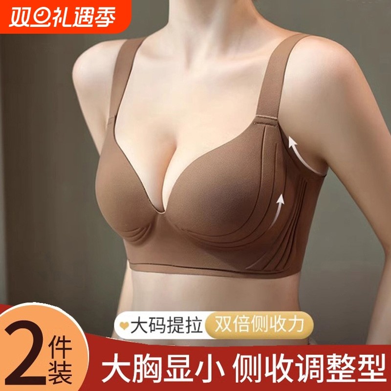润微提拉女王内衣女大胸显小无痕大码调整防下垂收副乳粉底液文胸