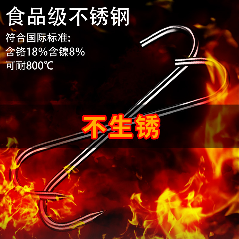 加粗S型大号晒腊肉挂钩304不锈钢实心挂猪肉香肠烤鸭尖头挂肉钩子