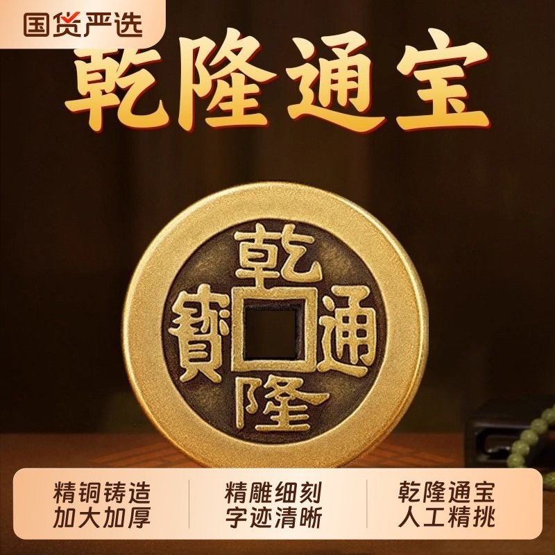 乾隆通宝古铜钱真品五帝钱三枚纯加厚铜清朝铜板币压门槛古代