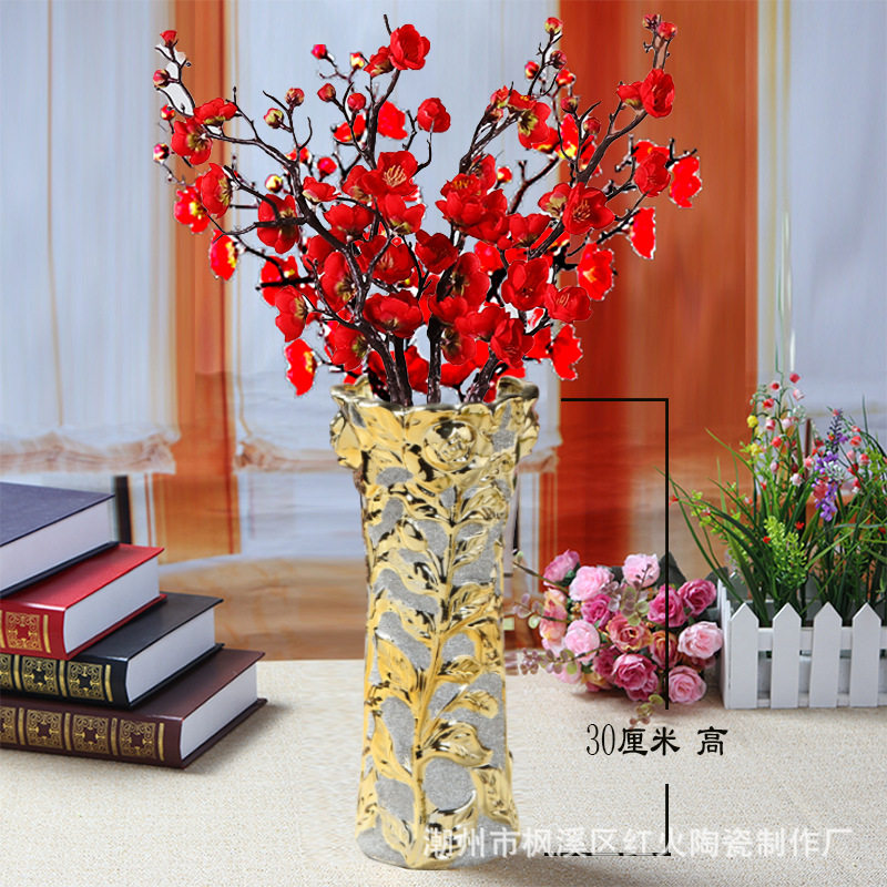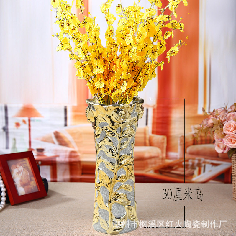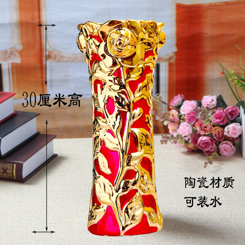 陶瓷花瓶欧式现代摆件家饰镀金家居结婚玄关客厅干花插手工镀金