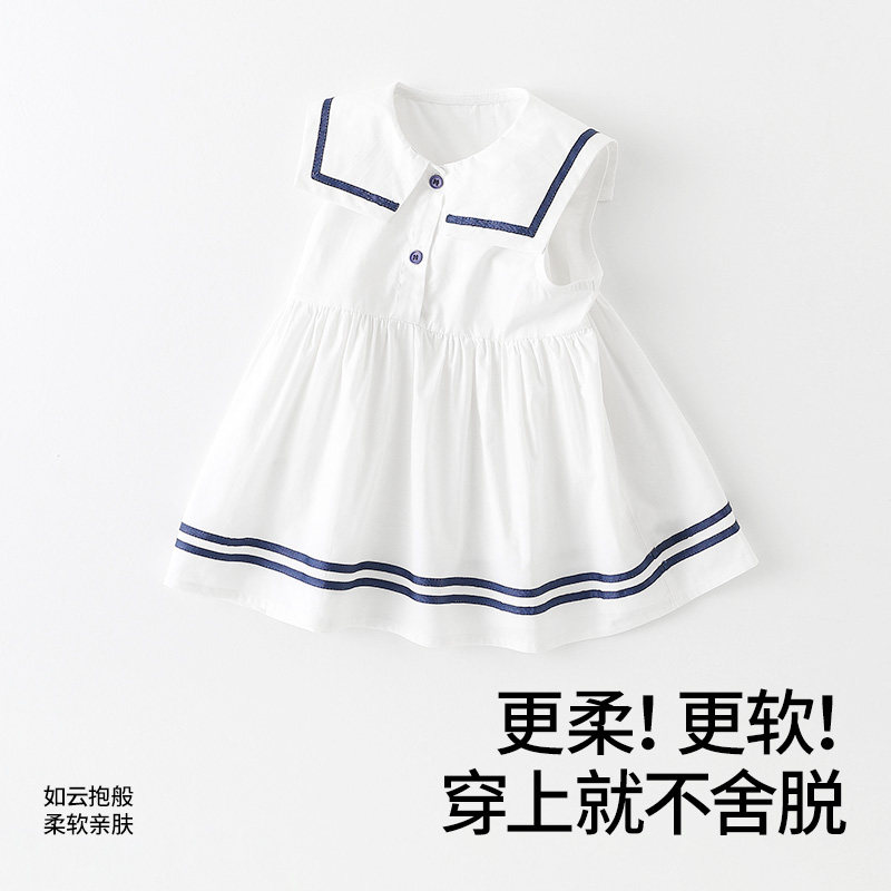 贝肽斯女宝宝裙子夏季新款学院风连衣裙女童洋气薄款短袖纯棉裙S