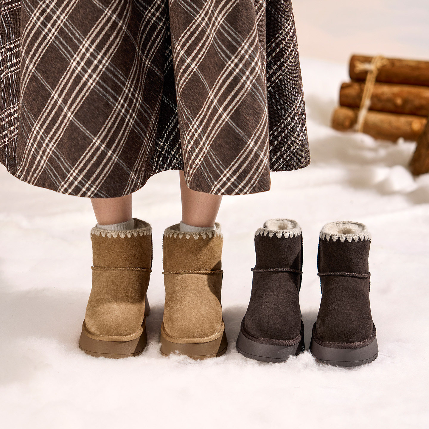 奥康 女鞋2025冬季新款厚底雪地靴女加绒保暖棉鞋增高短筒靴