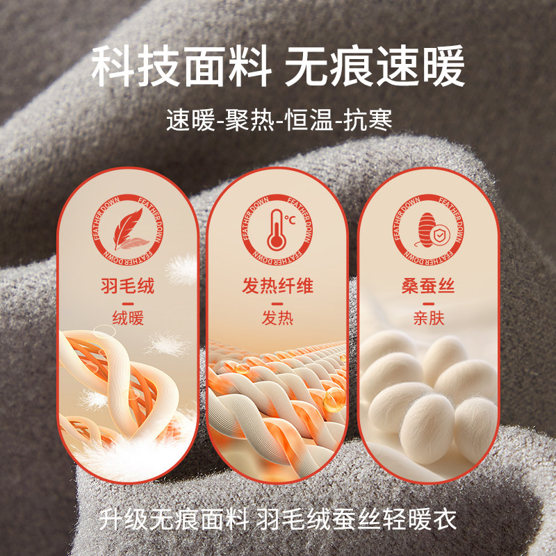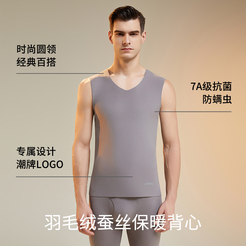 奥康羊毛蚕丝保暖内衣男绒德无痕发热加绒加厚内穿打底背心冬上衣