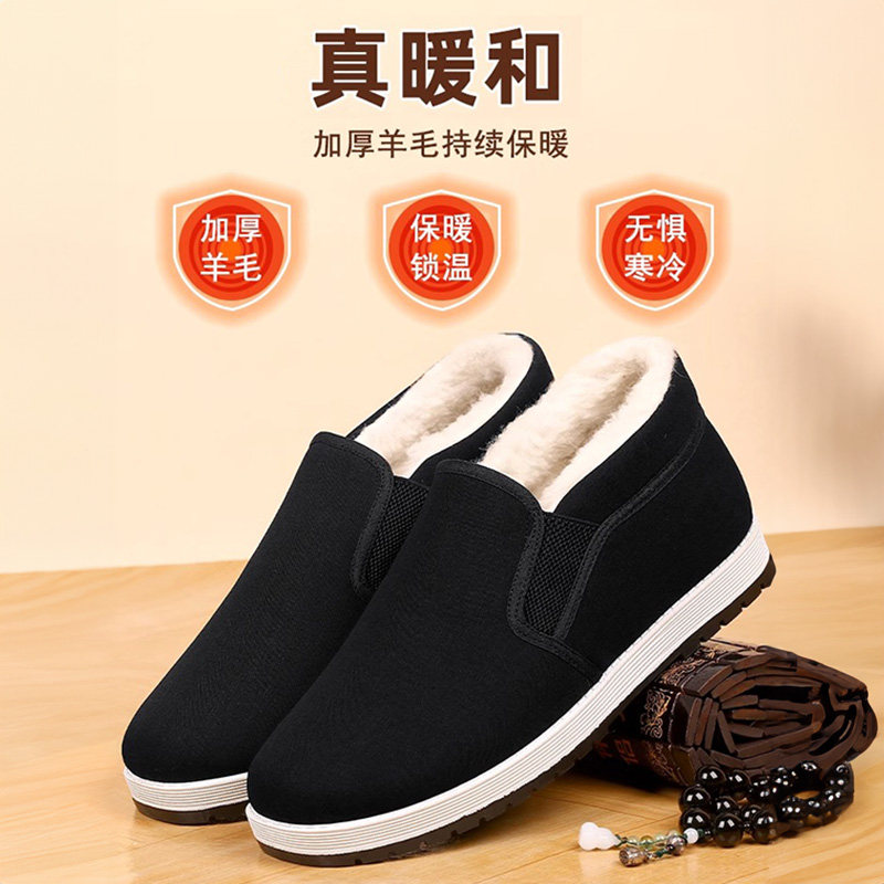 2026新款冬季加绒中老年千层底透气布鞋男鞋耐磨工作棉鞋老北京