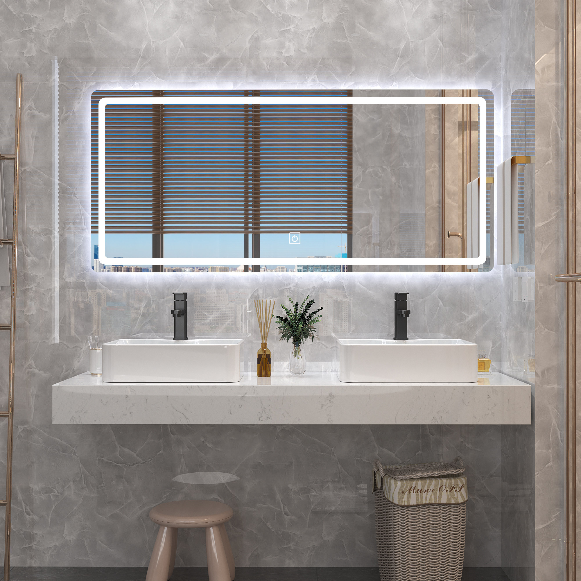 简约现代大理石双人浴室柜组合防雾化照明E0级人造石台面 简约现代浴室柜组合 防雾化照明功能 180双层普通方