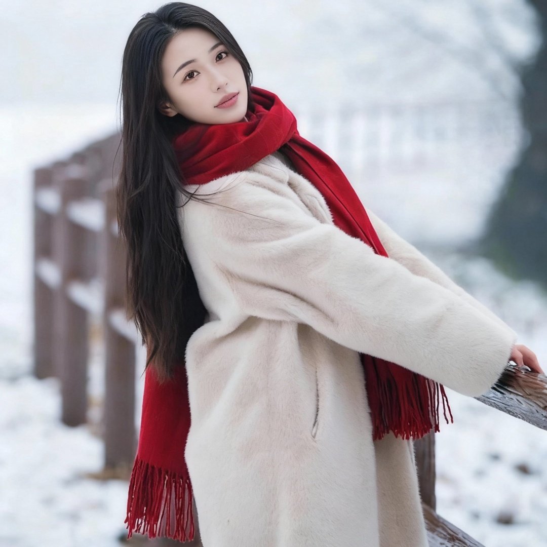 雪花双面针织围巾女秋冬季韩系氛围感加厚保暖高级感围脖复古披肩