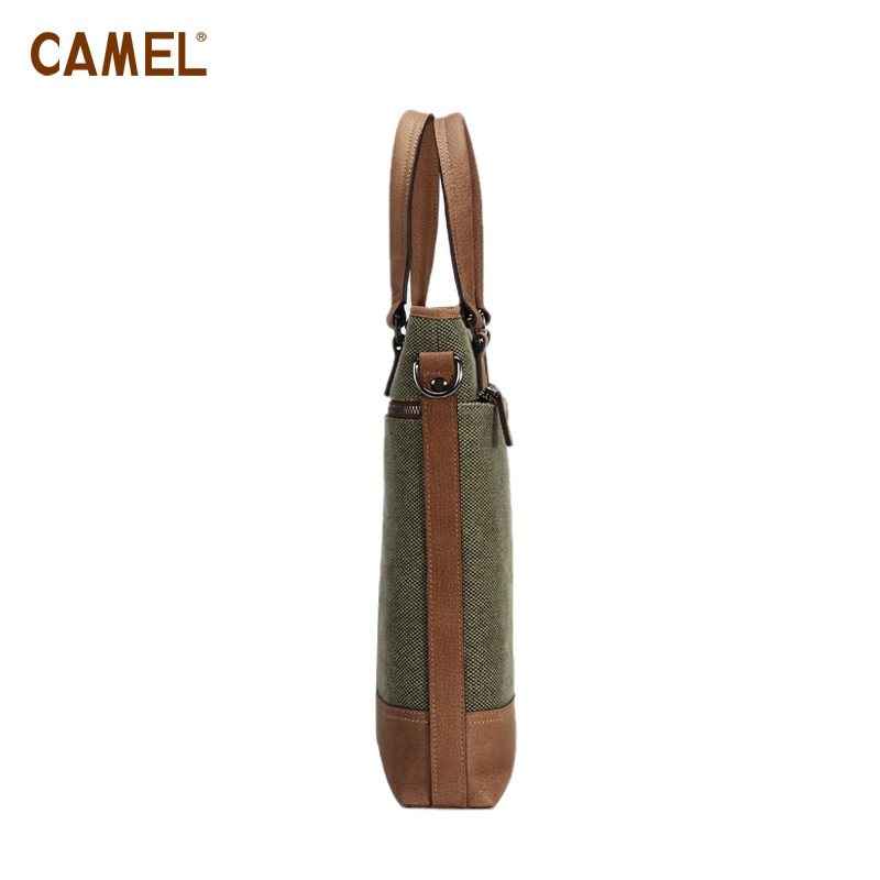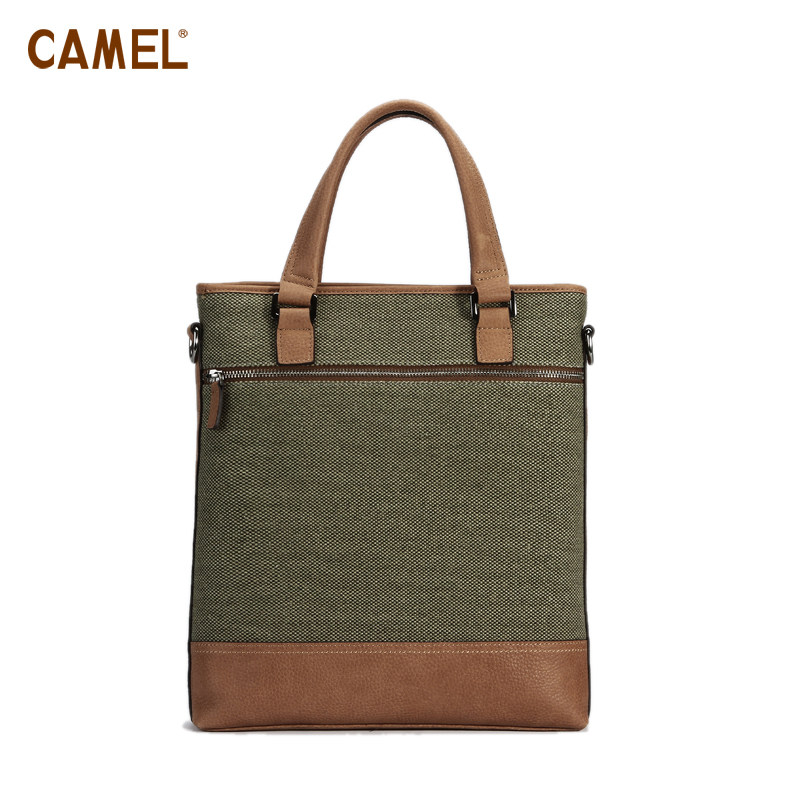 【非卖品】camel骆驼 牛皮+帆布 手提包 单肩包 男包 男士公文包