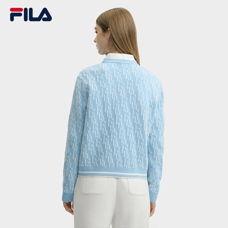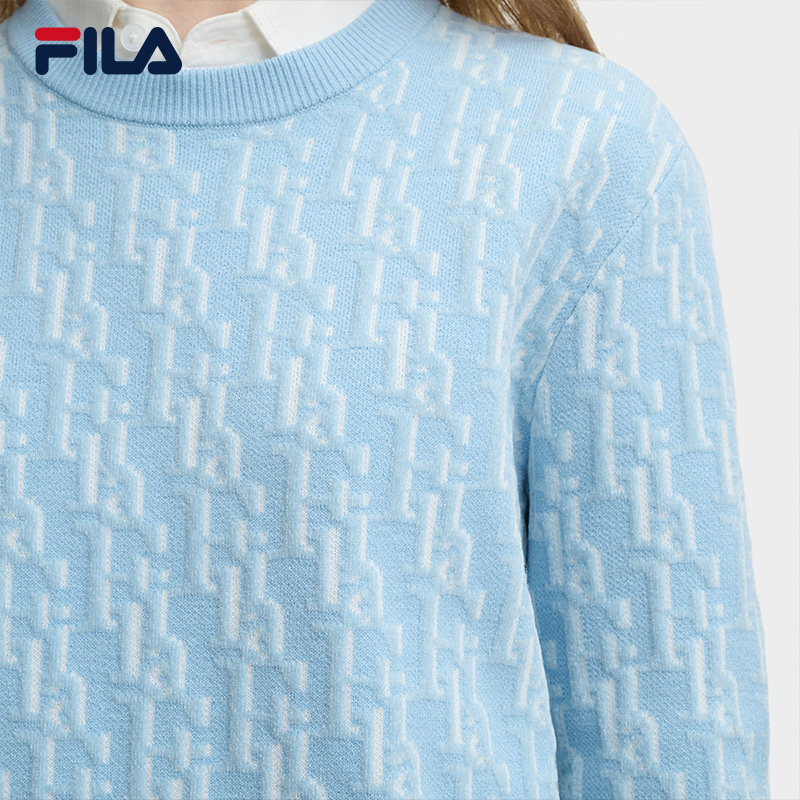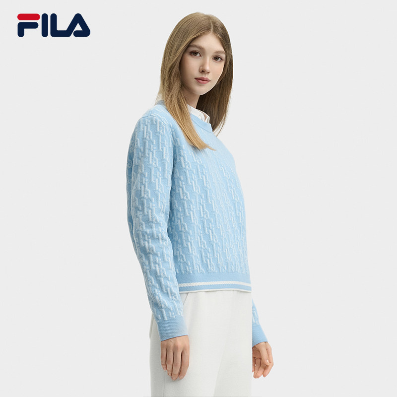 FILA斐乐官方女长袖保暖毛衣编织衫冬季新款时尚满印套头休闲上衣