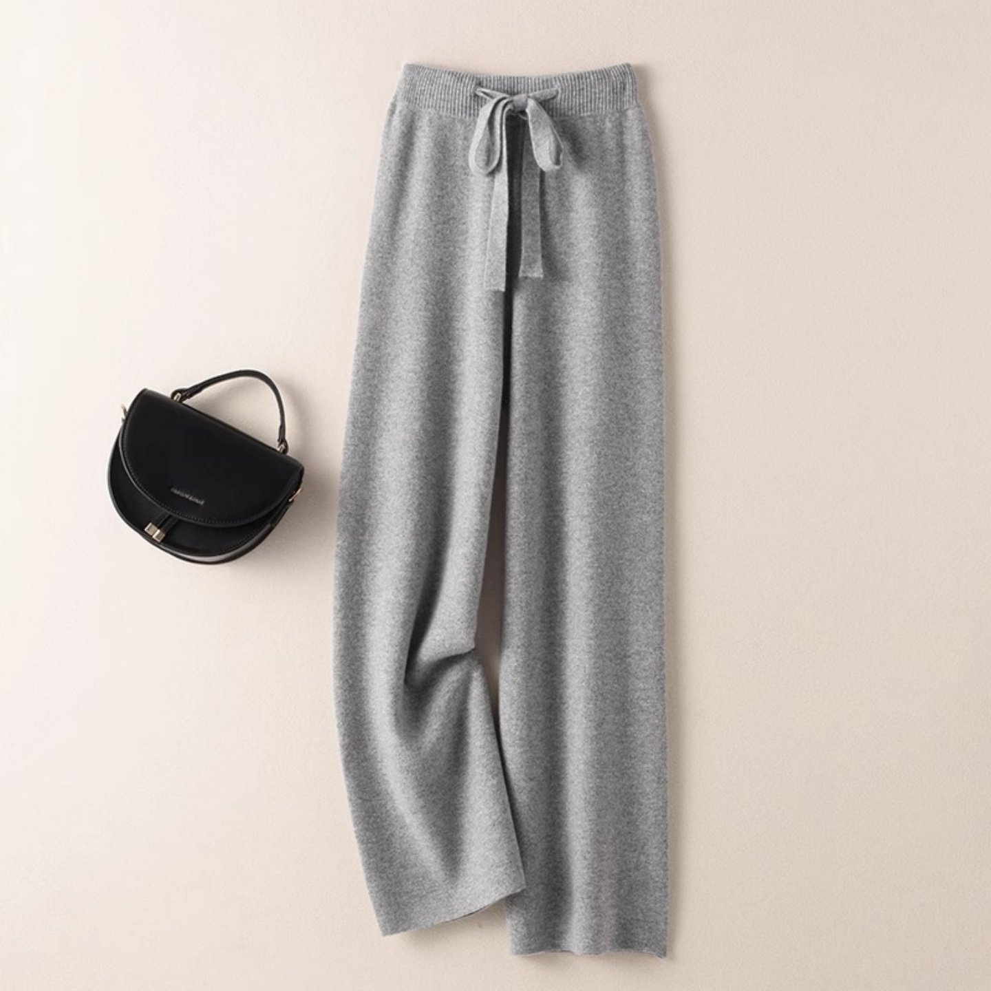 秋冬100%垂感羊毛针织裤女阔腿裤宽松羊绒直筒小个子休闲拖地长裤