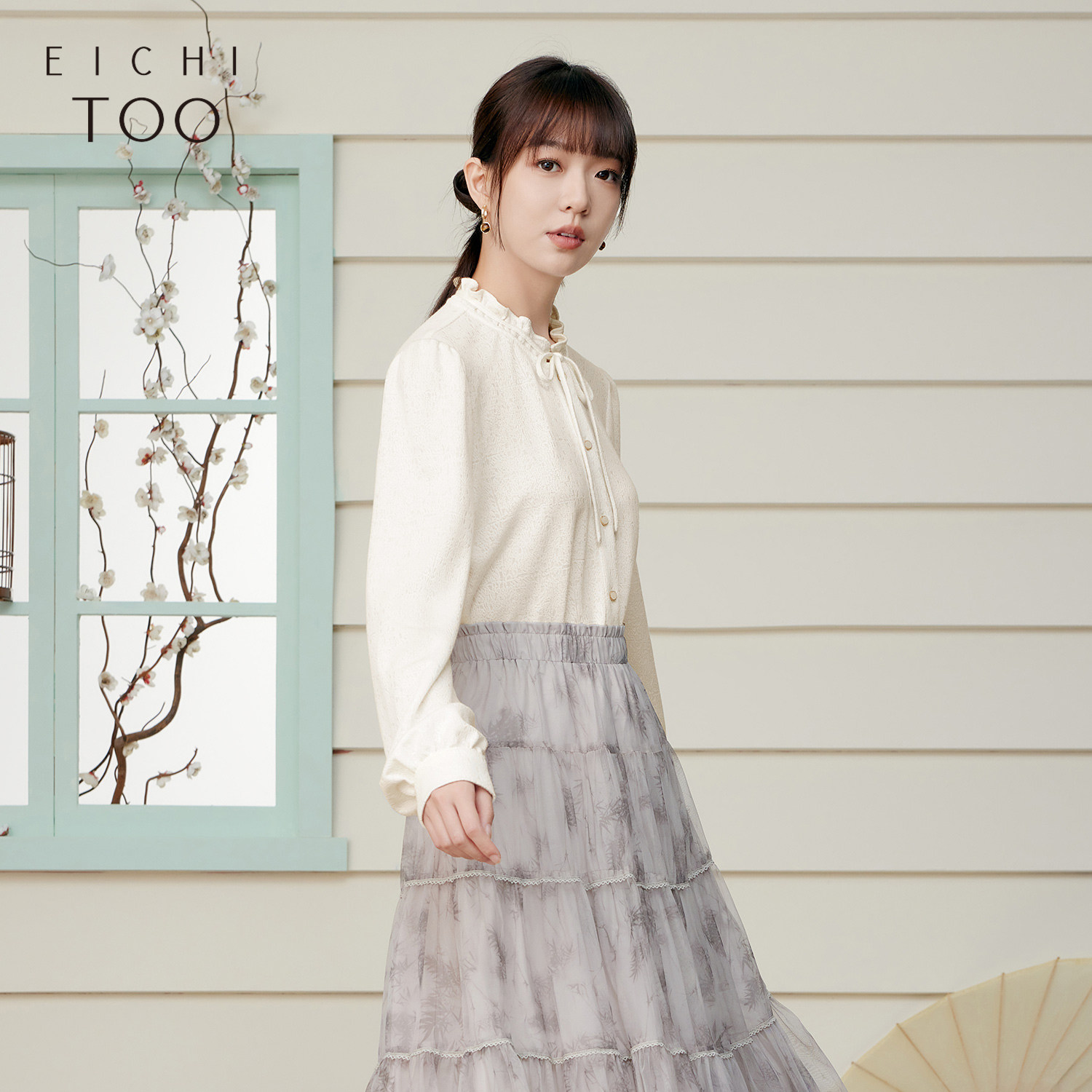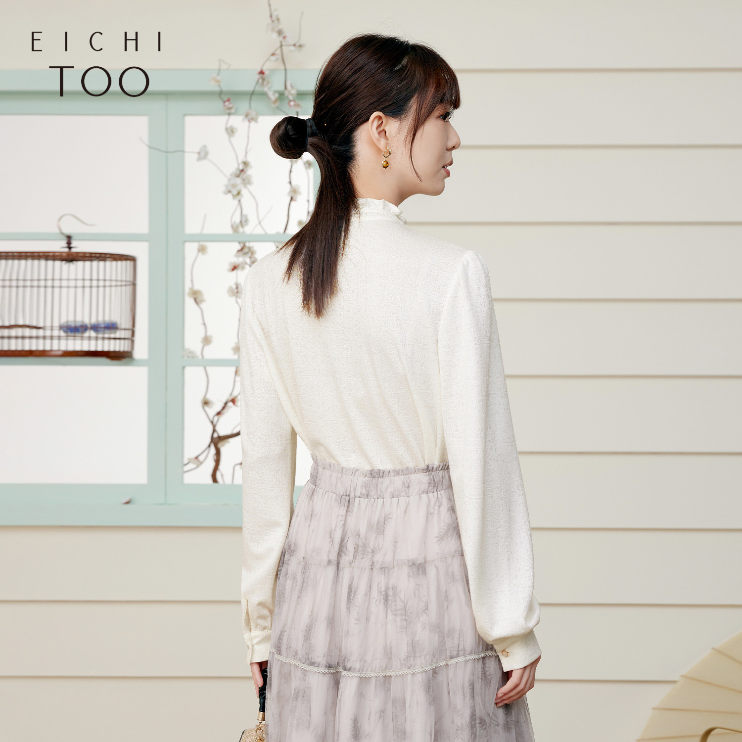 爱居兔春季新款时尚木耳边设计感长袖休闲衬衫