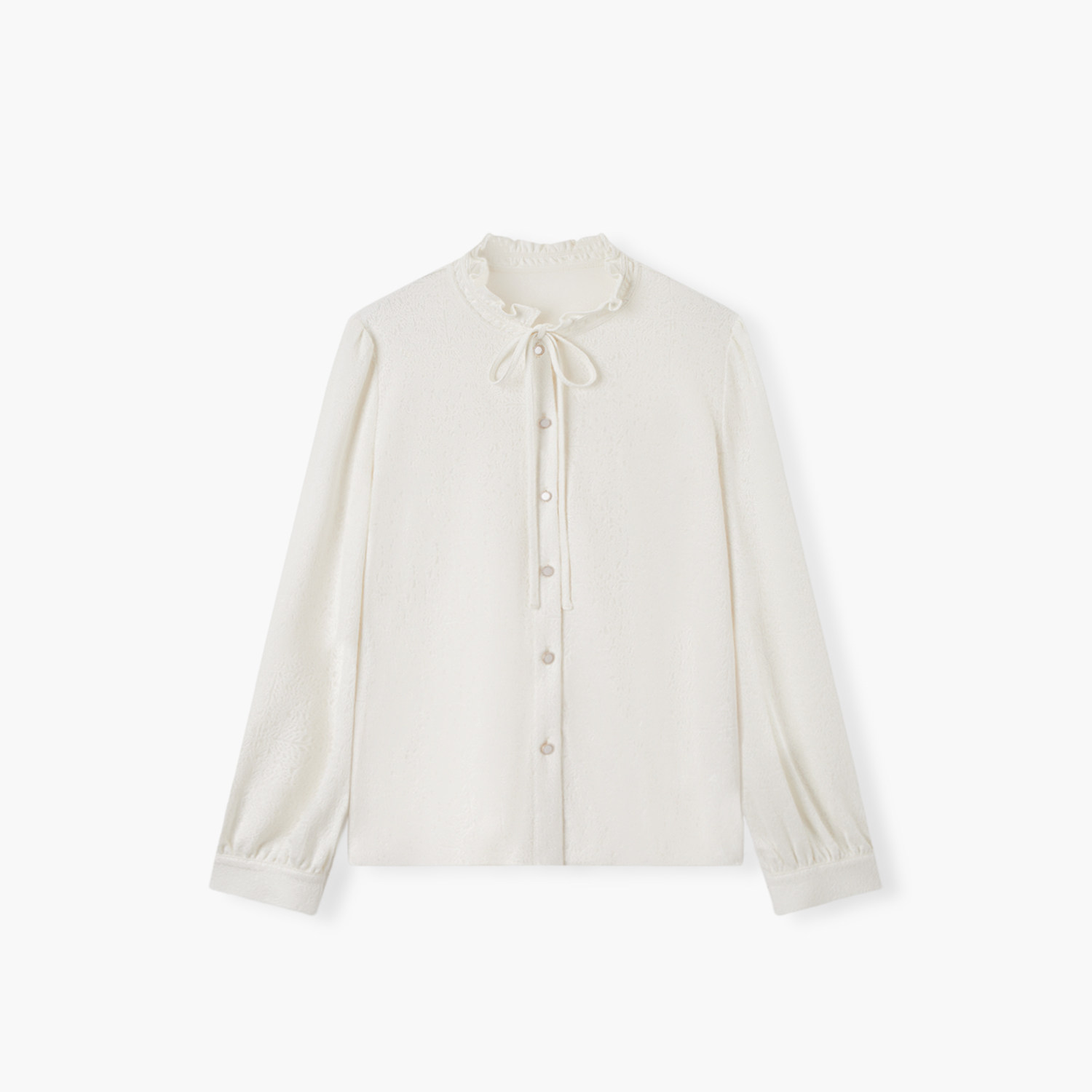 COCOBELLA名媛风手工压褶木耳边雪纺衬衫气质通勤飘带衬衣SR7062