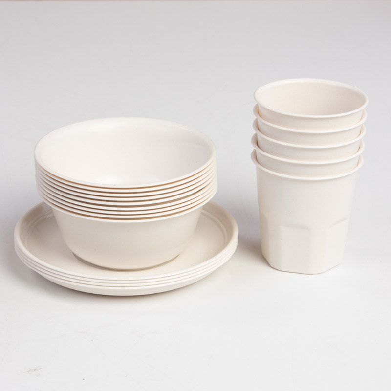 稻壳一次性碗食品家用饭碗厚碗筷餐具耐高温塑料野餐结婚用餐小