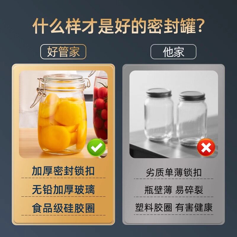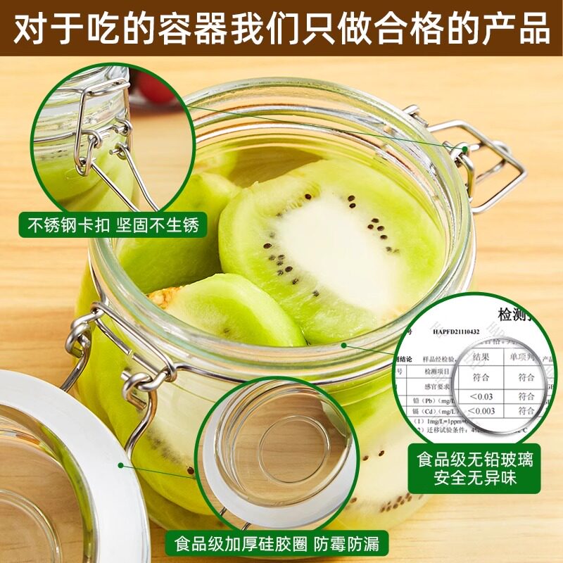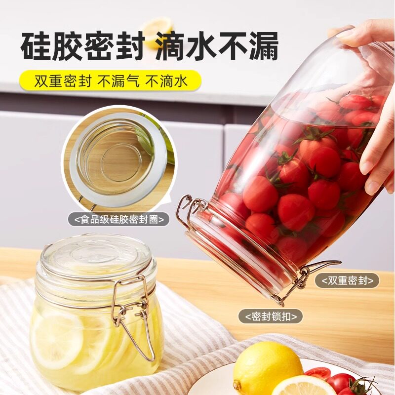 多功能玻璃密封罐大容量家用收纳储物罐防潮茶叶罐带卡扣蜂蜜瓶罐