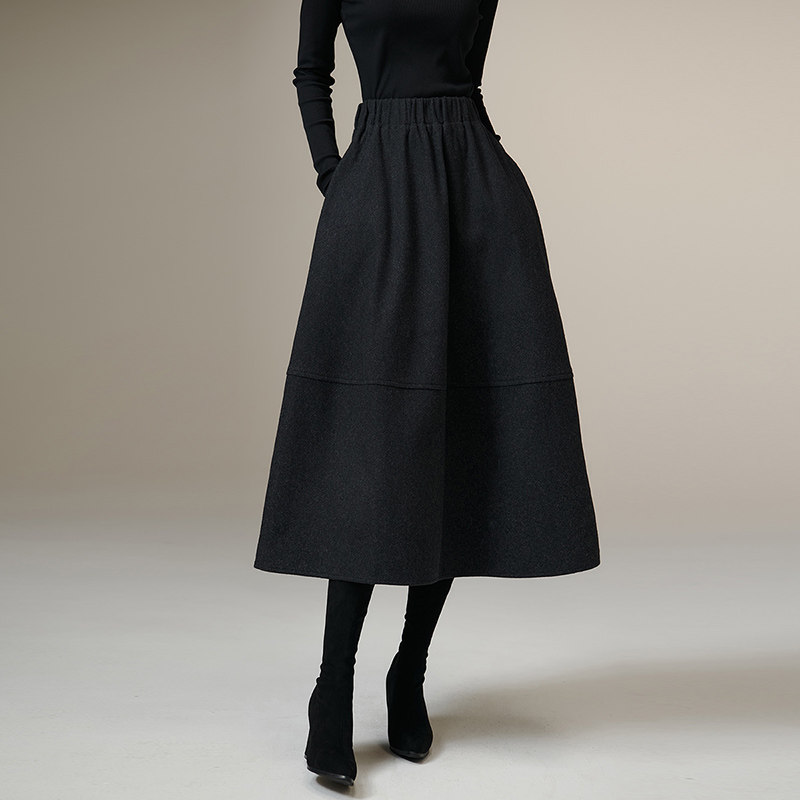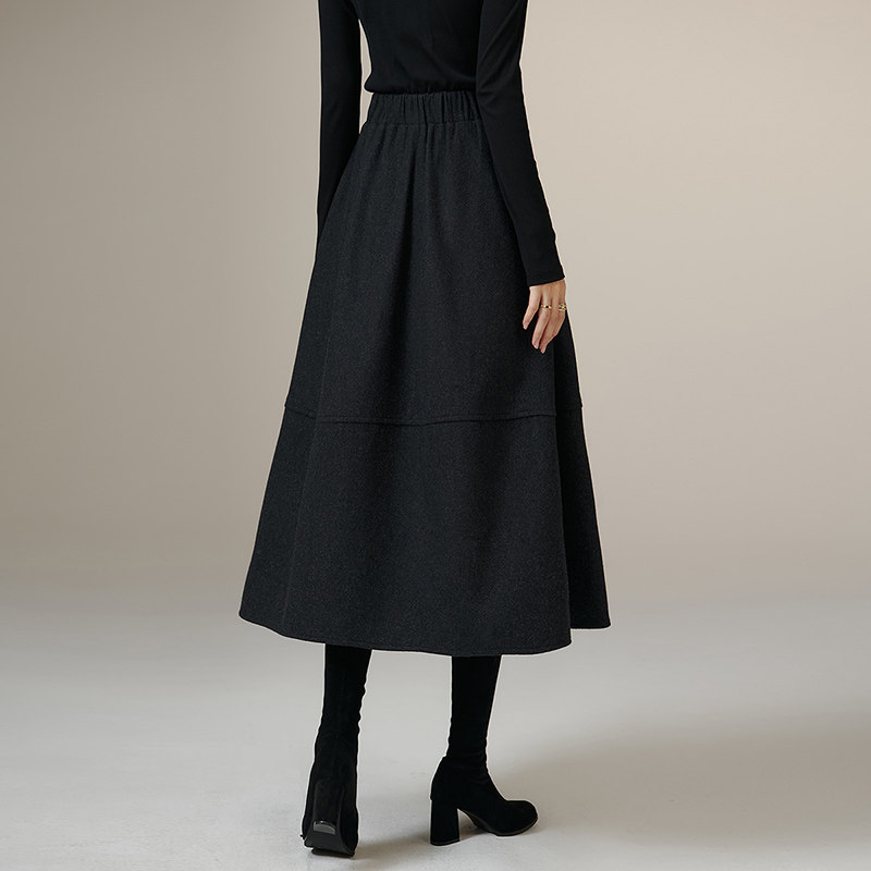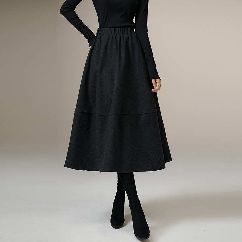晚白经典简约裙子高腰显瘦保暖羊毛大摆a字半身裙女2025新款冬