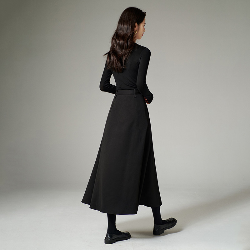 LIMONN |秋冬多颜色经典高腰显腿长A字百褶半身裙长裙